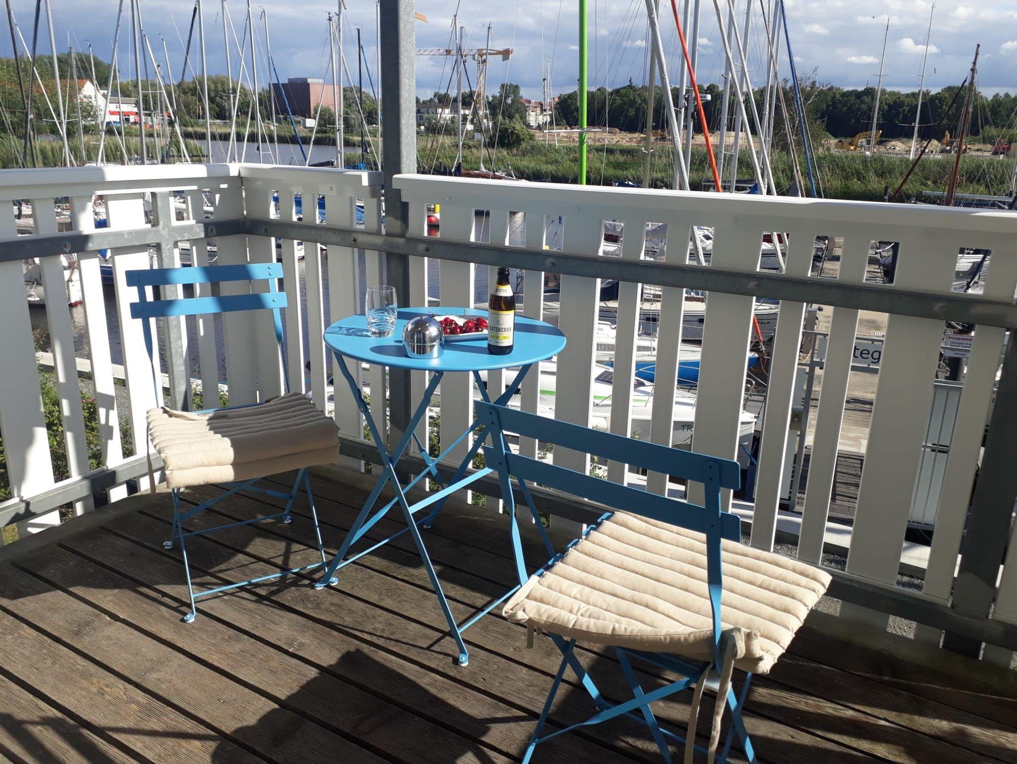 • 2m x 3m großer überdachter Süd-Balkon ausgestattet mit Mobiliar und zwei Relax-liegen. Hier lädt es zum Frühstücken ein und man kann dabei den ein- und auskehrenden Booten im Yachthafen zusehen