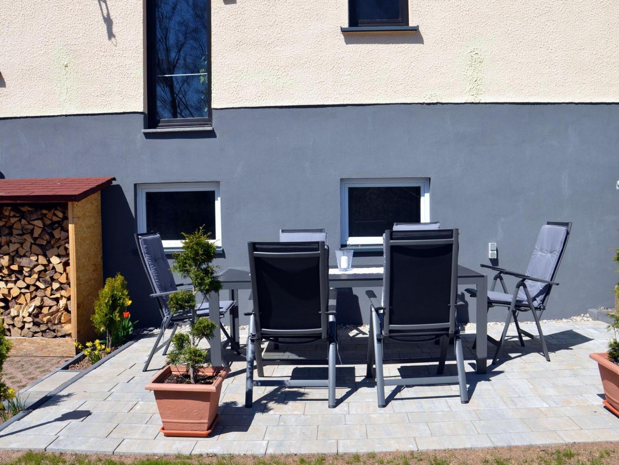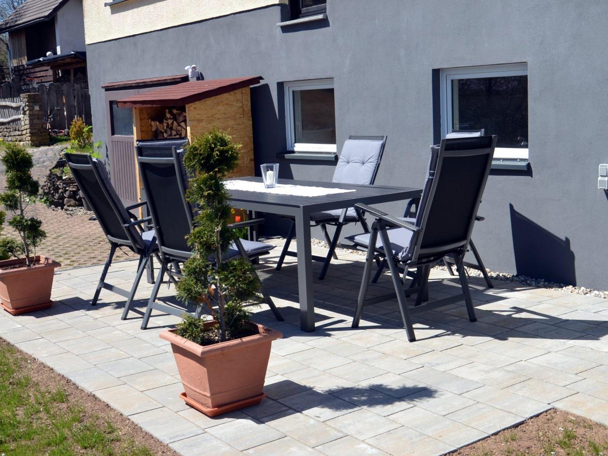 Ein großer Alutisch mit 6 Gartenstühlen, ein Sonnenschirm, diverse Grills (Holz, Gas, Tisch) und 2 Aluliegen sind in einem separaten Kellerraum für Sie direkt zugänglich untergebracht und können jederzeit genutzt werden.