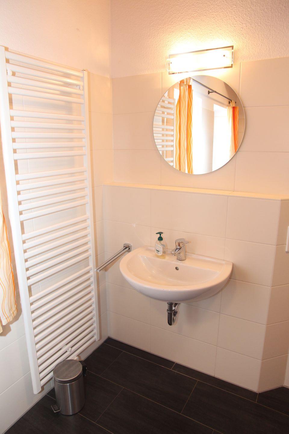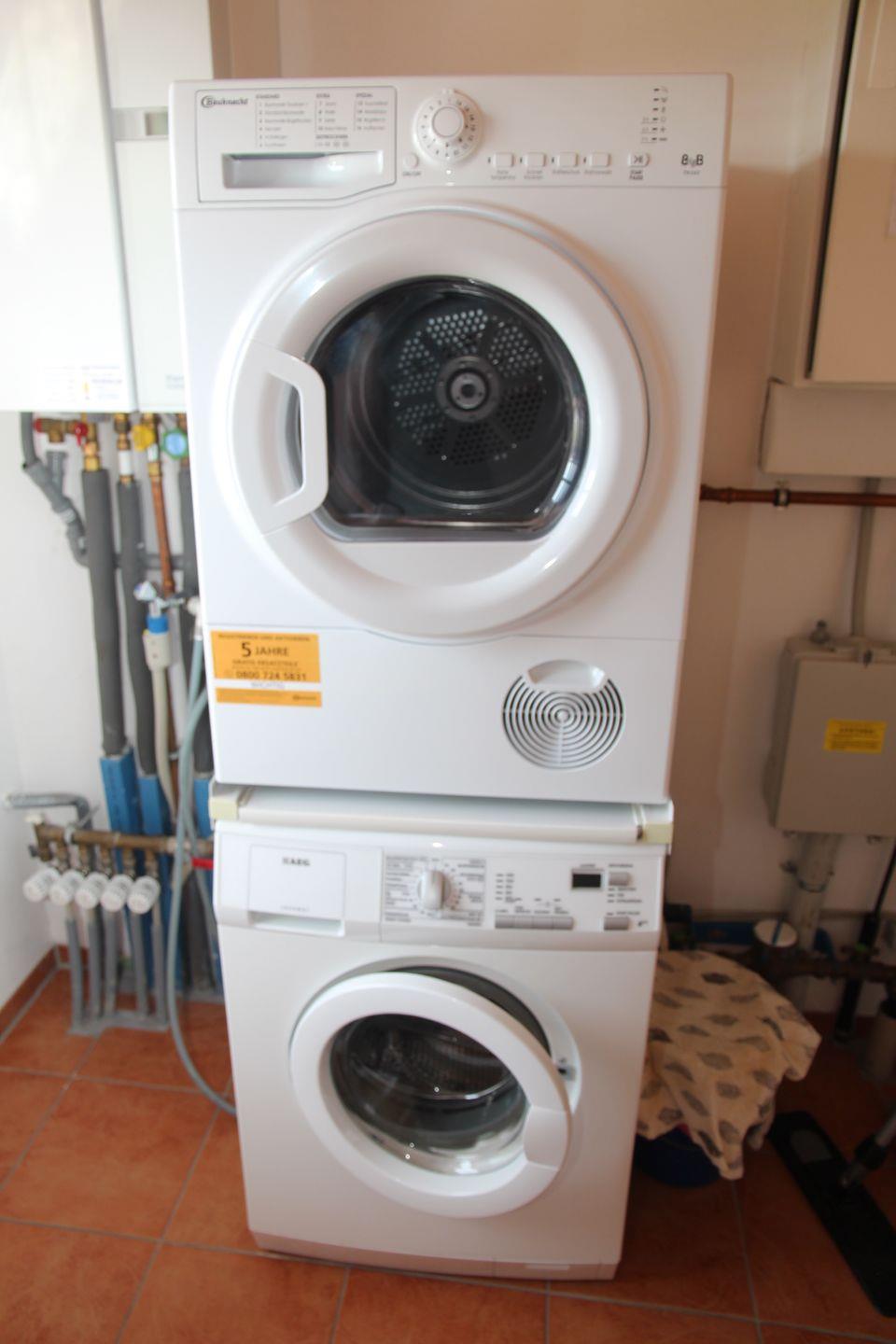 Im direkt angrenzenden Abstellraum sind Waschmaschine und Trockner, Wäscheständer untergebracht. Im großzügigen EG-Bad findet sich neben der Dusche und dem WC ein Bidet und auch die Sauna, ein Föhn ist vorhanden.