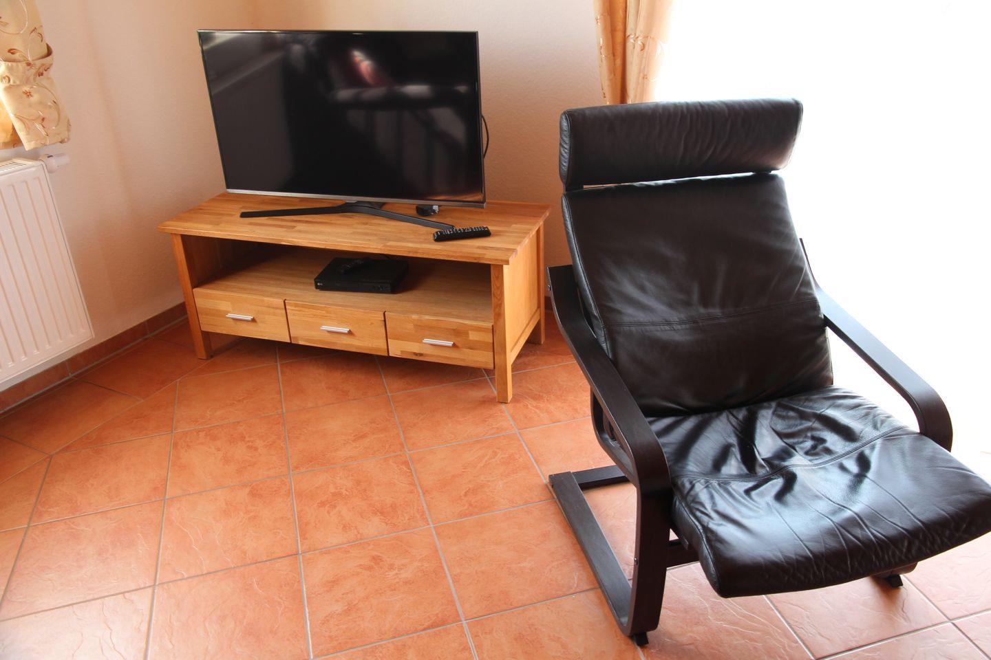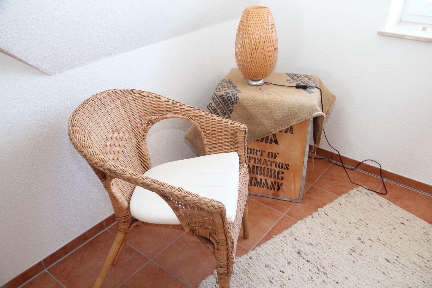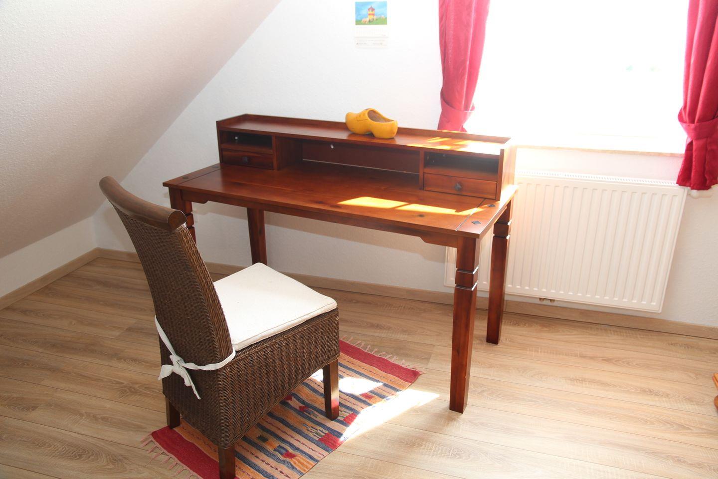 Ein weiteres Zimmer kann als Arbeitszimmer genutzt werden oder als weiteres Kinderzimmer. Hier befinden sich noch ein Bügeleisen, Bügelbrett, Kinderhochstuhl und ein Kinderreisebett.