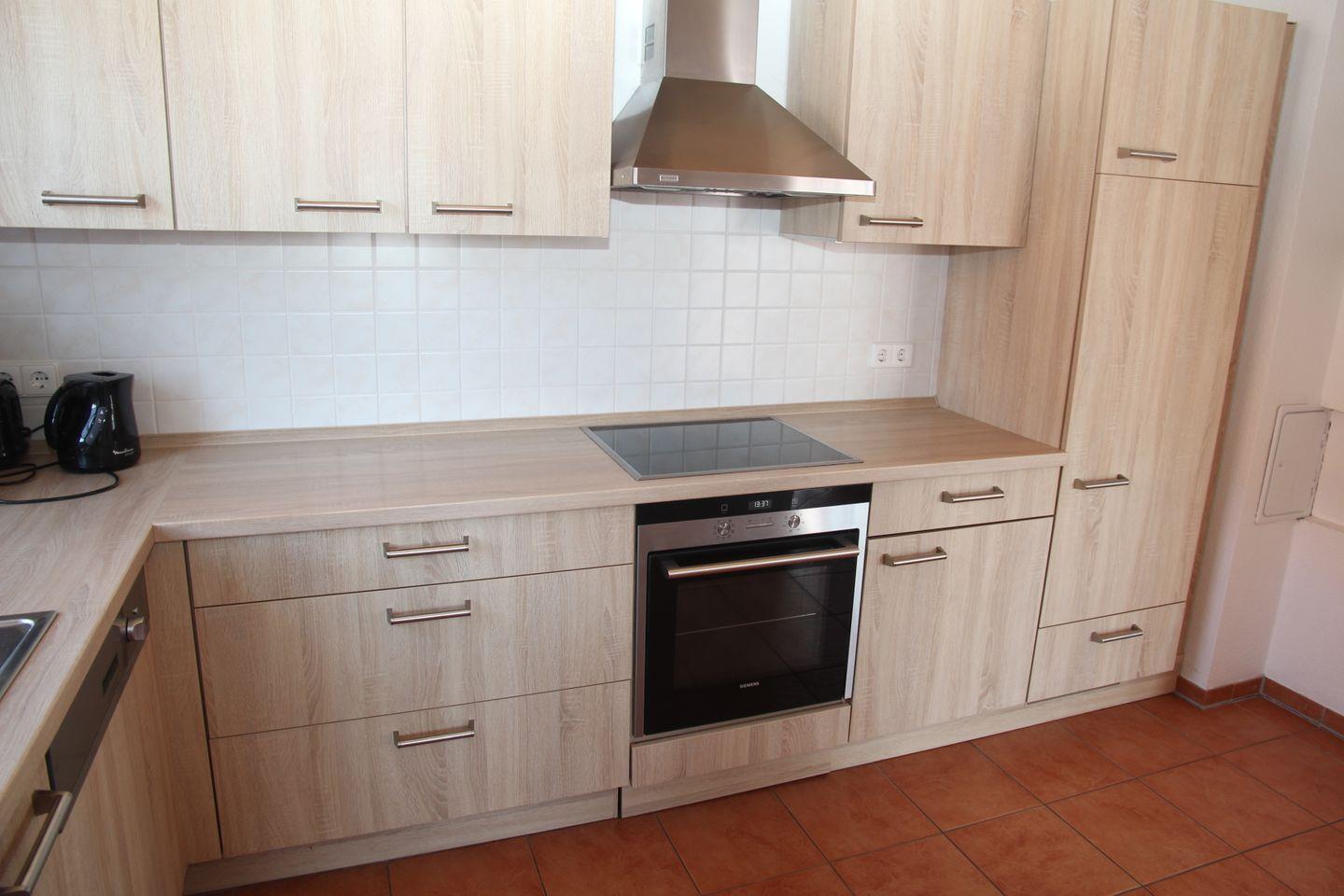 Im Erdgeschoss befindet sich der großzügige Wohn-/Essbereich mit großen Türen, die auf die Terrasse führen. Die Küche ist mit Backofen, Mikrowelle und Geschirrspüler, etc. voll ausgestattet.
