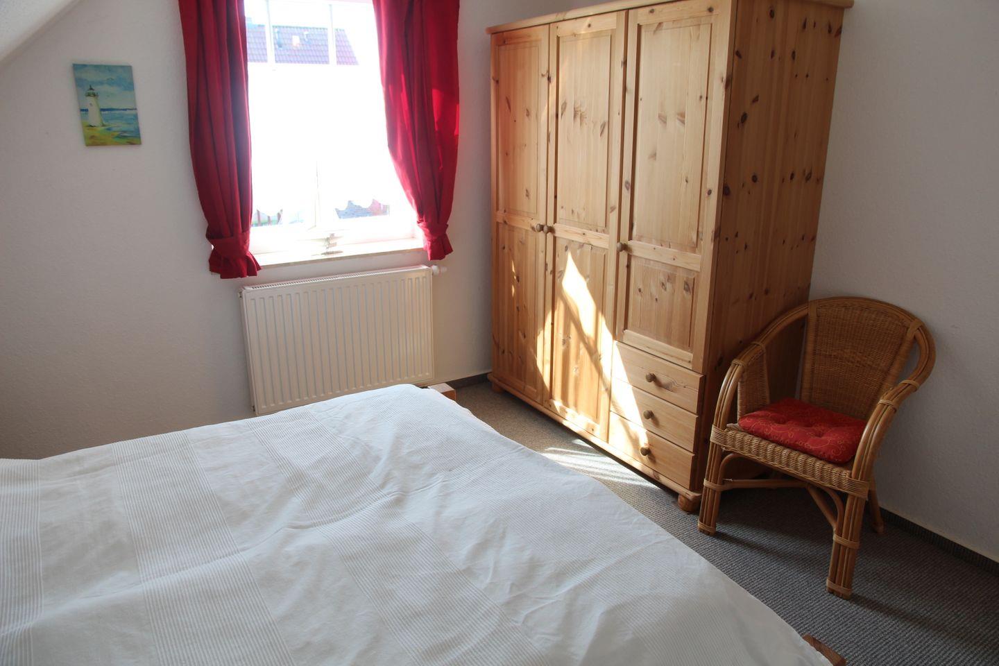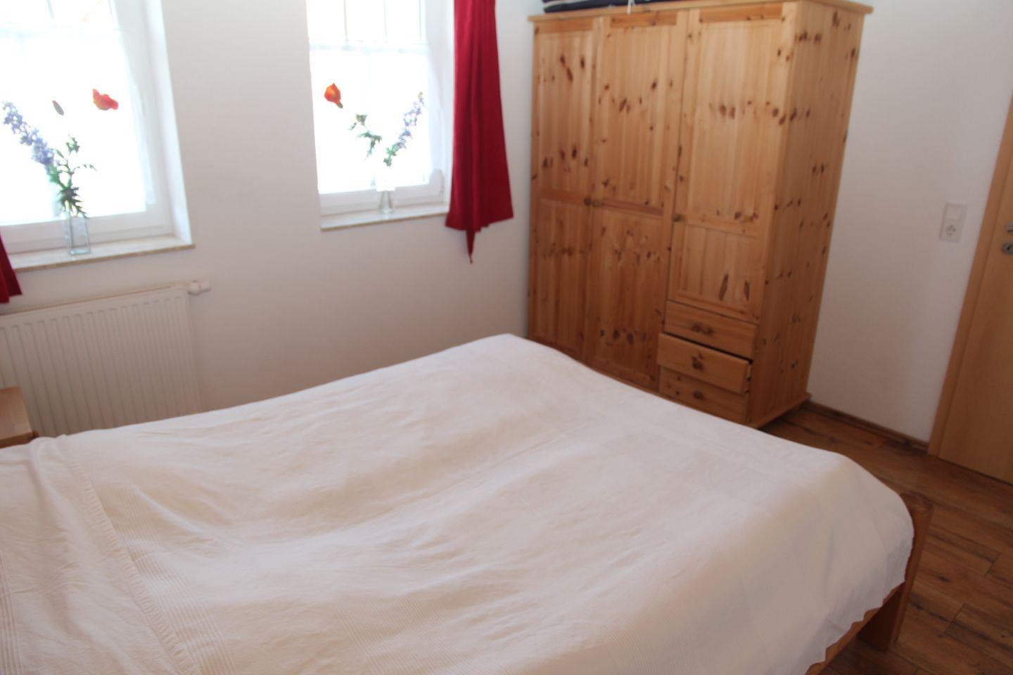 Eines der (Eltern-) Schlafzimmer (Doppelbett) ist auch im EG untergebracht und somit auch für die Mitnahme der Großeltern interessant.