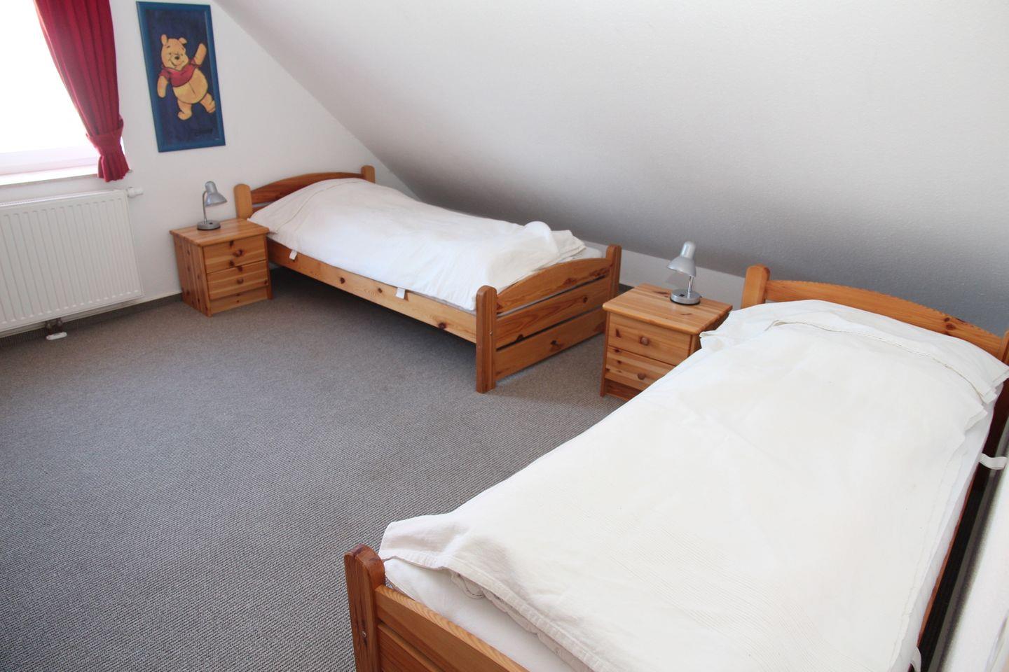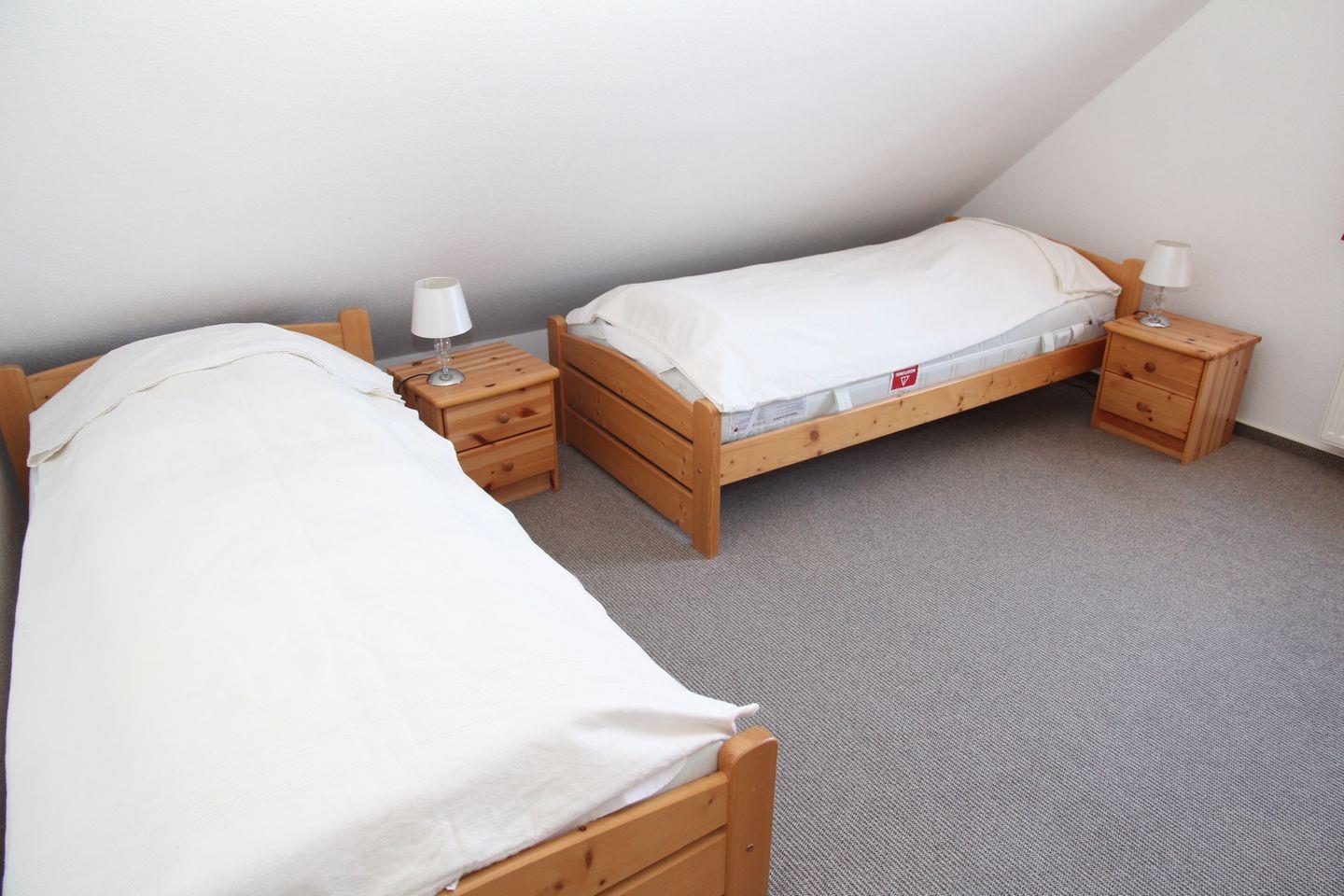 Im Obergeschoss sind 3 weitere Schlafzimmer (1 * Doppelbett, 2 * mit je 2 einzelnen Betten) und ein weiteres Duschbad.