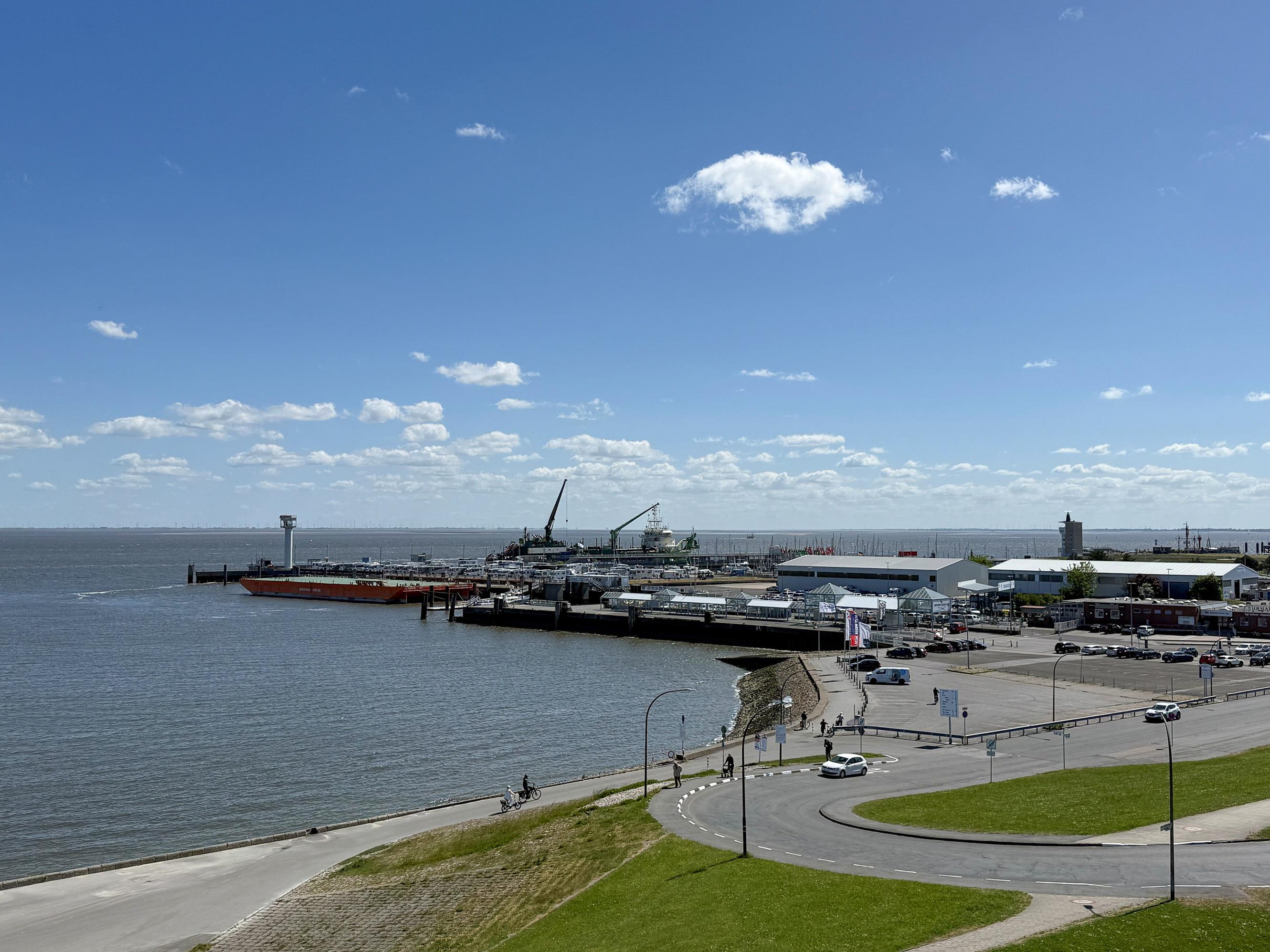 Mehr Cuxhaven geht nicht! Der spektakuläre 180 Grad-Rundumblick ist einfach unschlagbar. Hier haben Sie das maritime Treiben auf der Elbe stets im Blick. Kreuzfahrtschiffe, Kutter und Großsegler scheinen zum Greifen nah.