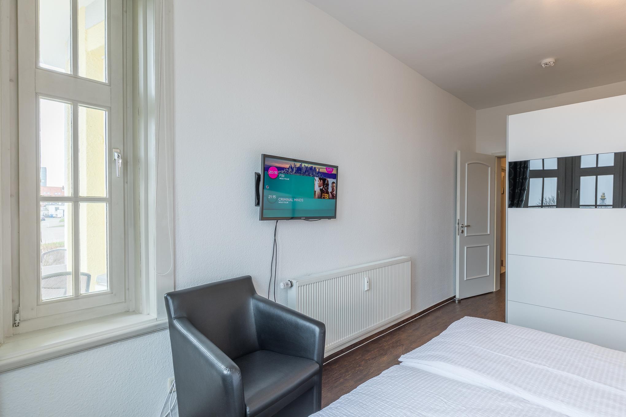 Die modern eingerichtete 3-Raum Wohnung (mit Teilseesicht und kleinem Balkon) mit einer Größe von ca. 80 m² Wohnfläche ist komplett bis zu 4 Personen ausgestattet. 1 Wohnzimmer[nbsp][nbsp]mit Essplatz, gemütlichem Sofa, TV, Stereoanlage und Zugang zum kleinen Balkon zur Seeseite, 1 Schlafzimmer mit Doppelbett und TV, 1 Schlafzimmer mit 2 Einzelbetten, separate große Küche (Cerankochfeld, Backofen, Mikrowelle, Kaffeemaschine und Wasserkocher) mit Essplatz, 1 Bad mit Badewanne und WC, Nichtraucherwohnung, keine Haustiere, PKW-Stellplatz direkt am Haus.