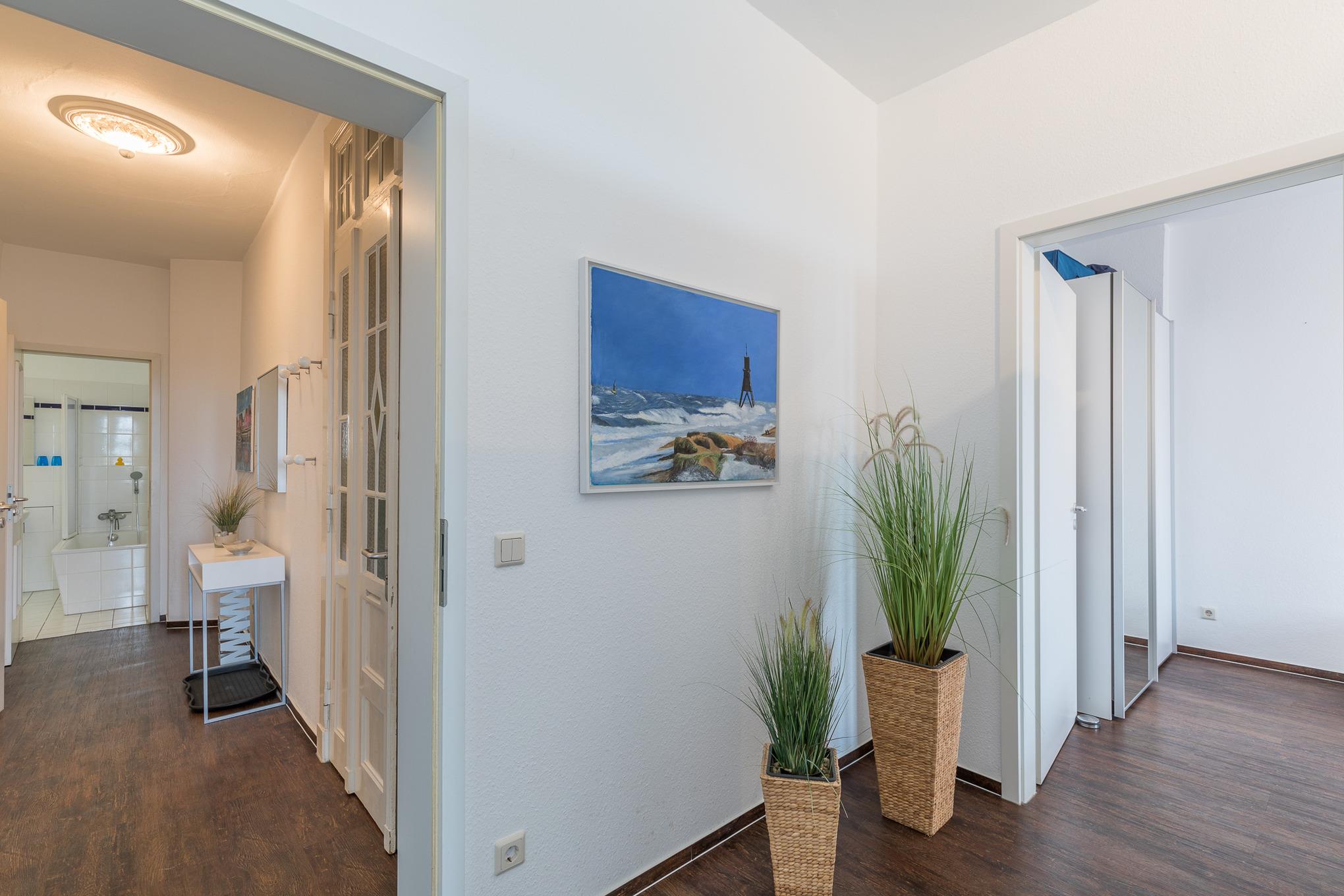Fahrstuhl im Haus (fährt aber nur bis zur halben Etage), vom Wohnzimmer und den beiden Schlafzimmern haben Sie eine Teilseesicht, innerhalb weniger Gehminuten erreichen Sie die Alte Liebe und verschiedene Restaurants. Genießen Sie die Leichtigkeit und Weitläufigkeit unserer Ferienhäuser und die Wohlfühlatmosphäre an der Nordsee.