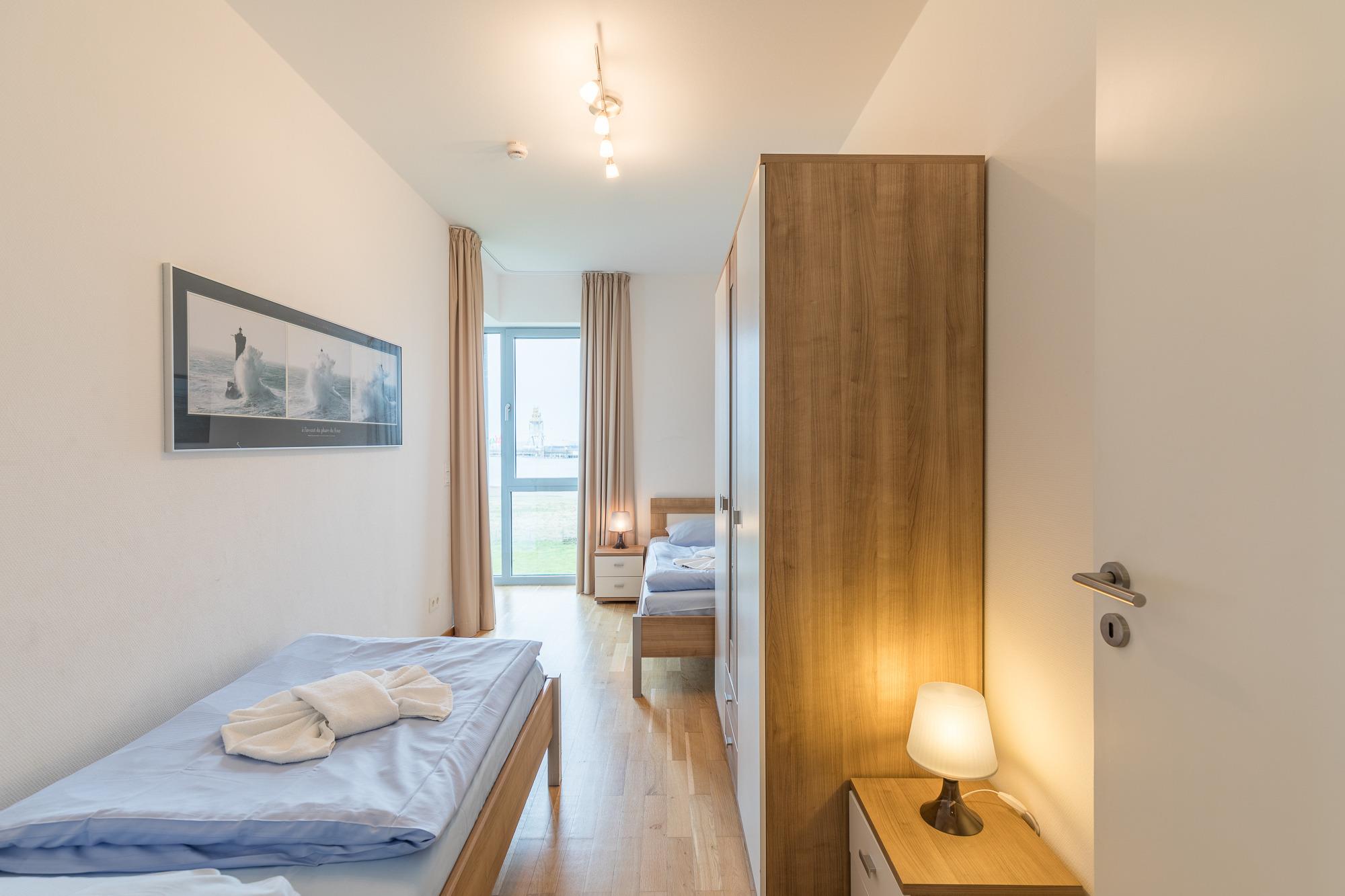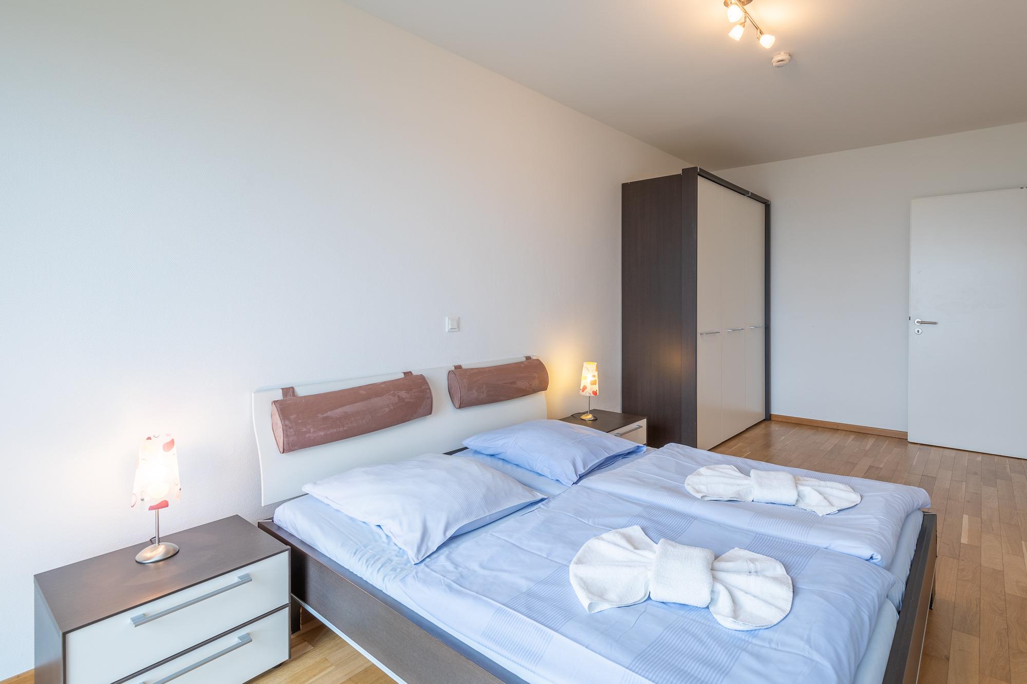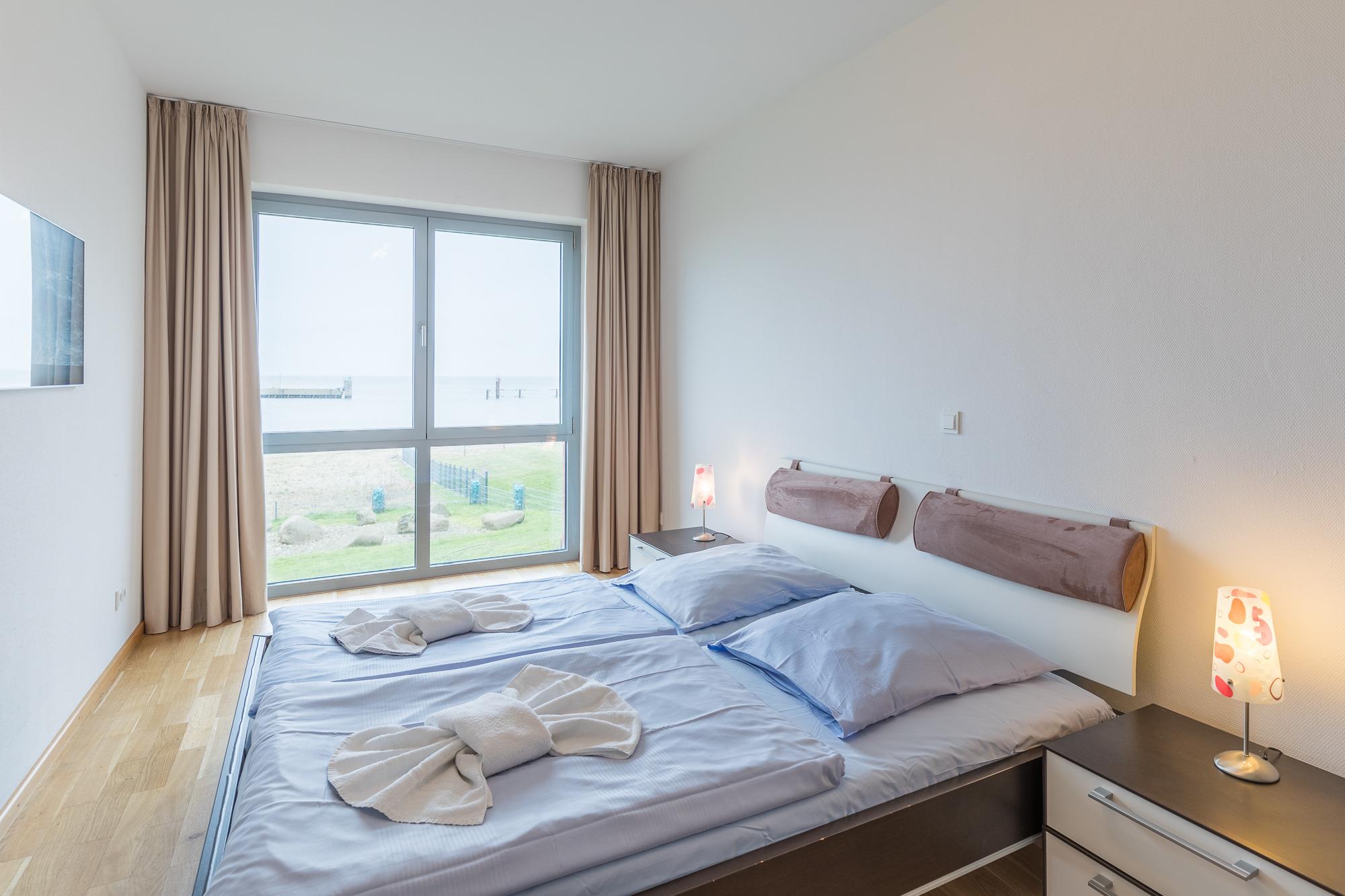 Die modern eingerichtete 3 Raum Wohnung (ca. 75m²), mit Seeblick und Blick auf den Yachthafen ist komplett bis zu 4 Personen ausgestattet. 1 Wohnzimmer[nbsp][nbsp]mit Essplatz, gemütlichem Sofa, TV, Zugang zum Balkon zur Seeseite, Küchenzeile (Cerankochfeld, Backofen, Geschirrspüler, Mikrowelle, Kaffeemaschine und Wasserkocher), Essplatz, 1 Schlafzimmer mit einem Doppelbett, 1 Schlafzimmer mit 2 Einzelbetten, 1 Bad mit Wanne und Dusche, WC, 1 Bad mit Dusche und WC, kostenloses WLAN,[nbsp][nbsp]Nichtraucherwohnung, keine Haustiere, PKW-Stellplatz direkt vor dem Haus.