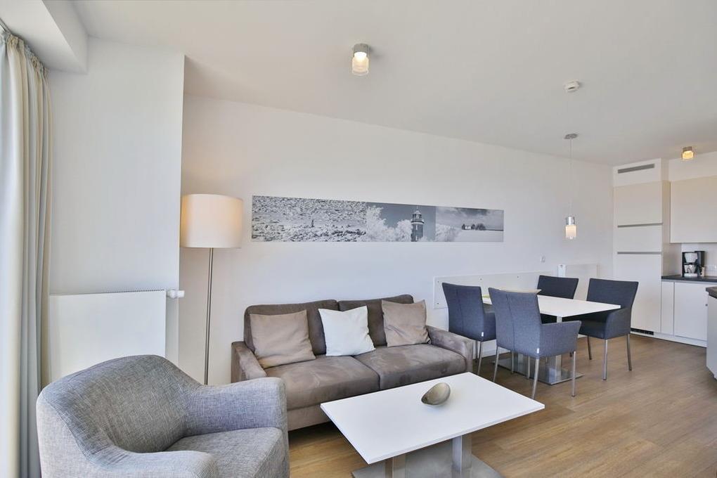 Wohlfühlappartement mit Seesicht in der 3. Etage! Hochwertig ausgestattet für 2 Pers. Großer Balkon mit Seesicht (ost), vollständige Küchenzeile mit Mikrow., Geschirrspüler etc., der Schlafbereich ist über Außenjalousien abzudunkeln, SAT-TV, Blue-Ray-DVD, CD-Kompaktanlage, USB-Steckdosen, kostenloses W-Lan-Internet, allergikerfreundlich, ebenerdige Dusche/WC, Föhn, freie Saunanutzung, breiter Stellplatz in der Tiefgarage, keine Haustiere und natürlich Nichtraucher.