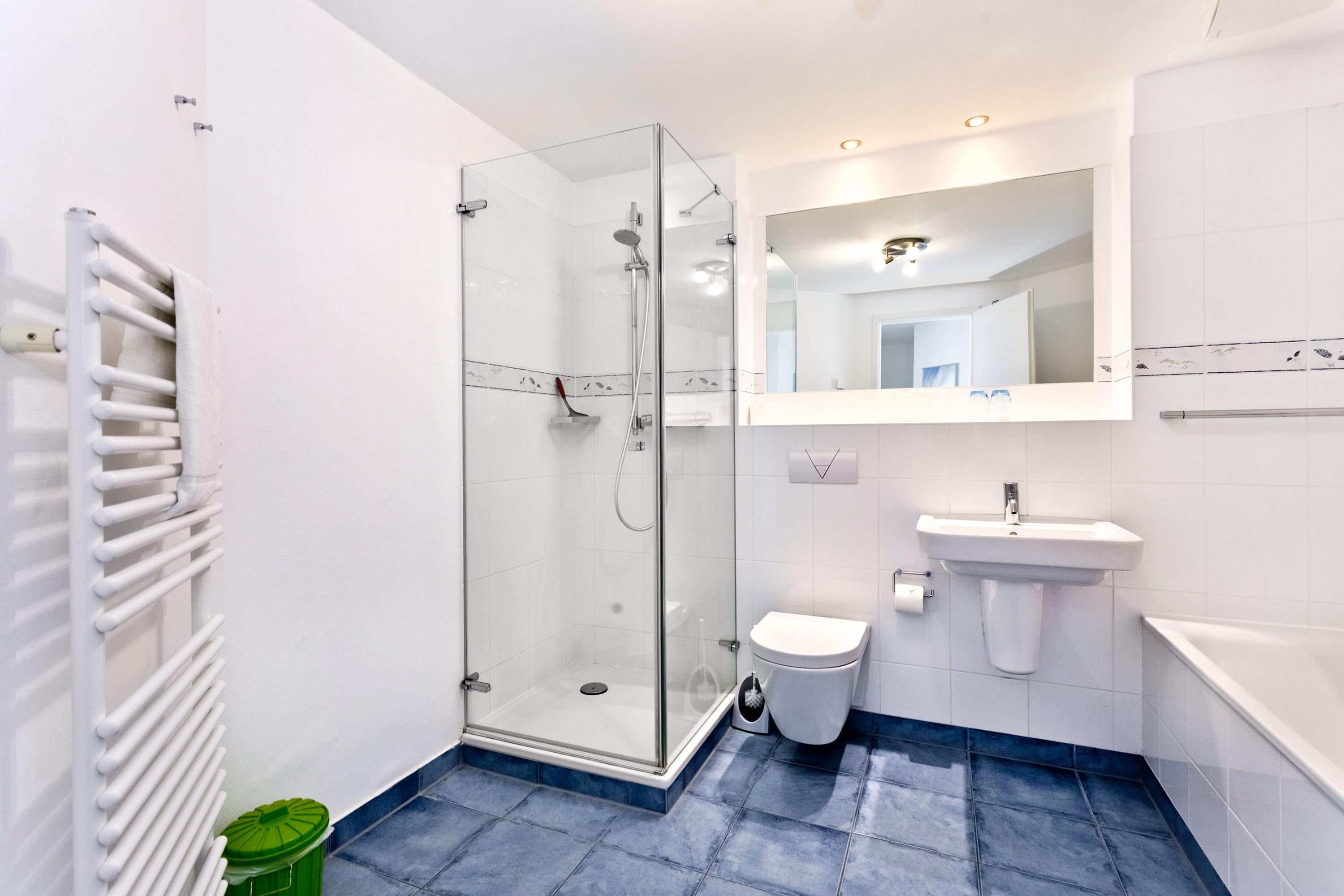 Badeværelse med bruser og badekar