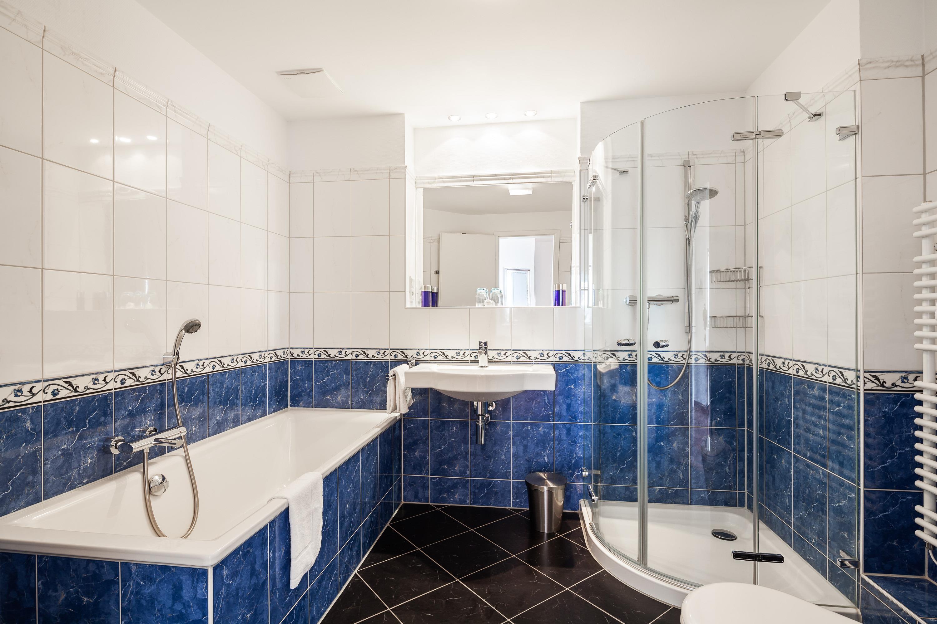 Badeværelse med bruser og badekar