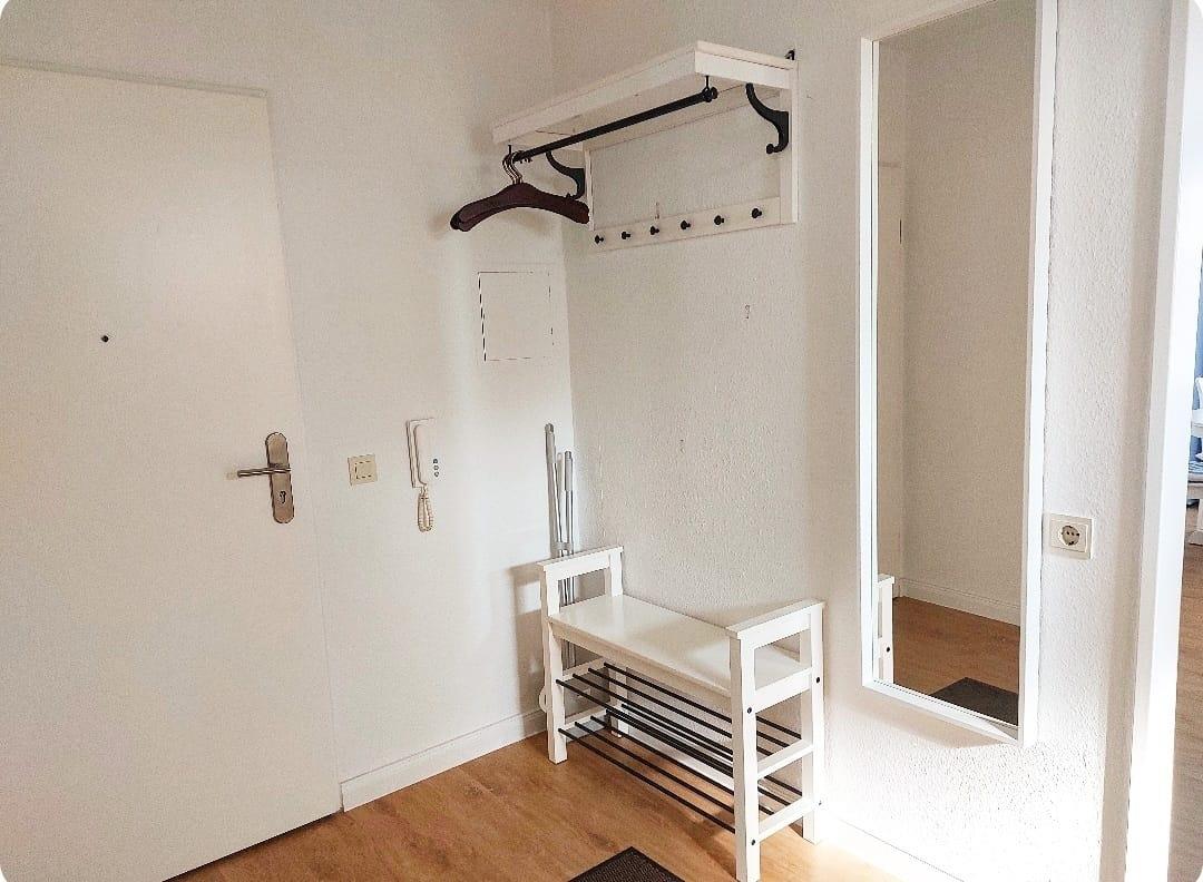 Die Ferienwohnung empfangt Sie in der Diele, großzügig mit Garderobe und dem Zugang zur Küche, zum Duschbad und zum Wohnbereich. Eine Waschmaschine, Kühlschrank mit Gefrierfach befinden sich direkt in der mit vielen Ablagen gut ausgestatteten Küche. Der Essbereich, der sich im Wohnzimmer befindet, bietet auch für ein Frühstücksbrunch genügend Platz am Tisch und wenn es das Wetter zulässt wird am Abend der Wein auf dem Balkon ausgeschenkt. Auch wenn Sie hier keine Seesicht genießen, die direkte Deichnähe lässt Sie entspannen. Wenige Schritte und Sie sind auf der der Deichkrone und haben das Wasser zum greifen nahe. Das Bojenbad in der Grimmershörnbucht ist nur wenige Meter entfernt.
