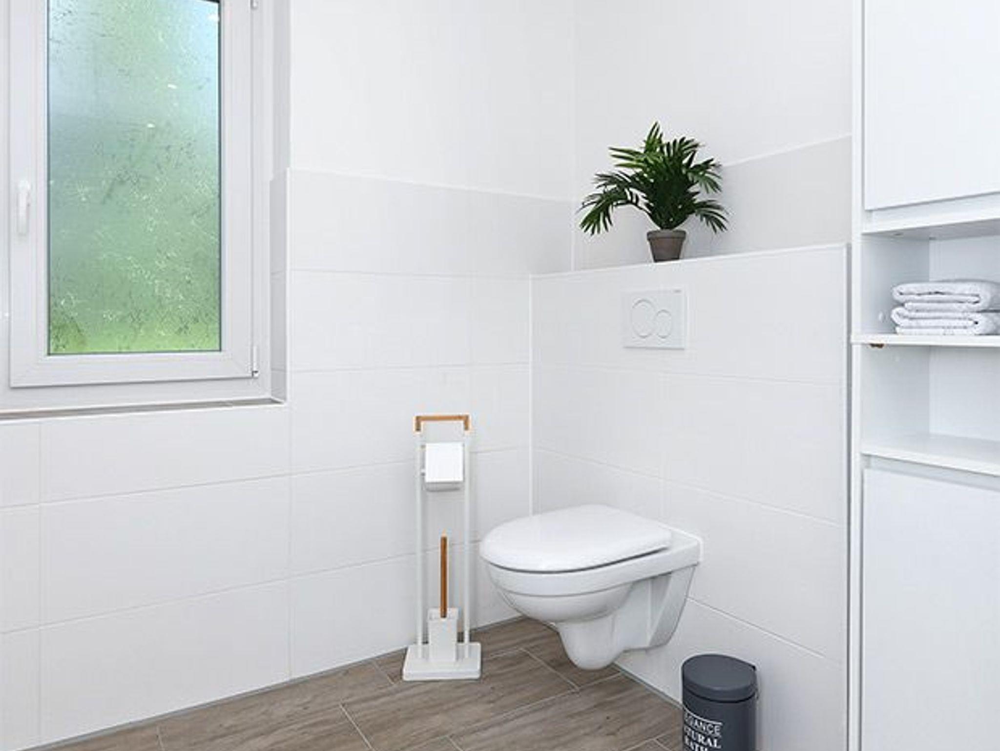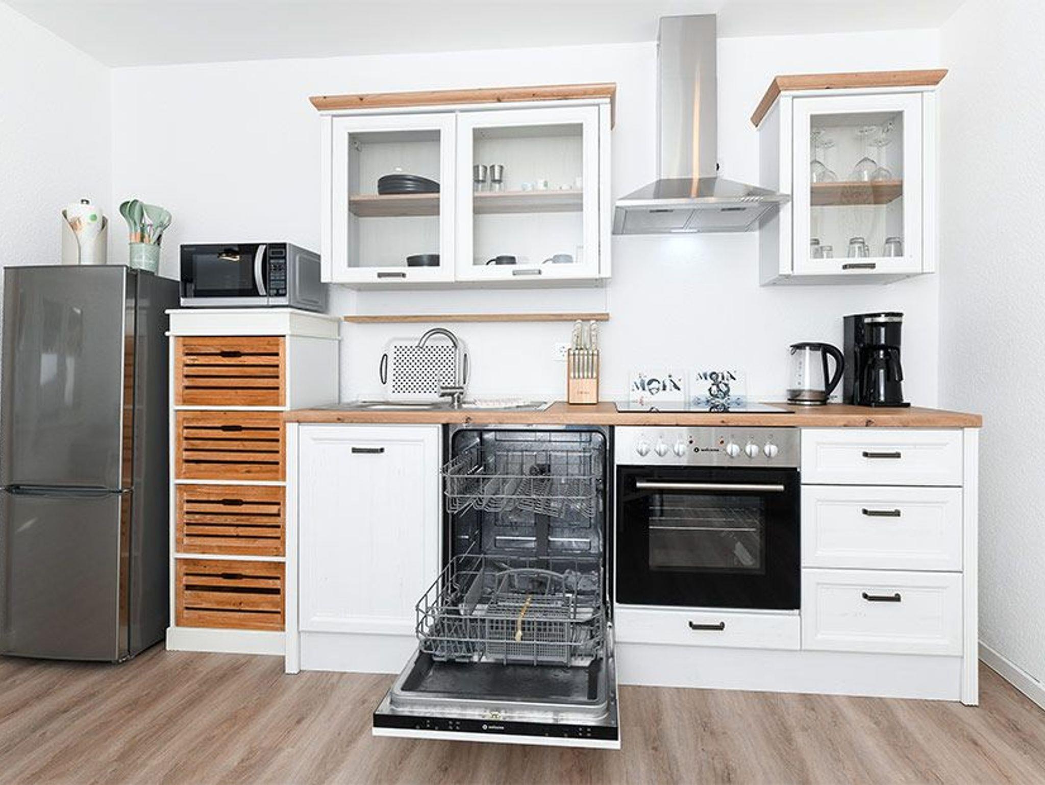 Weiter Highlights der Wohnung sind die Küche mit Backofen, die ruhige Lage mit Terrasse, der kostenlose WLAN Internetzugang, sowie das moderne Badezimmer mit ebenerdiger Dusche.