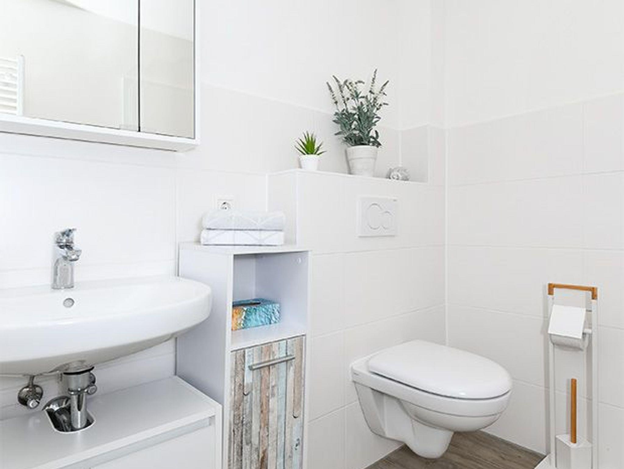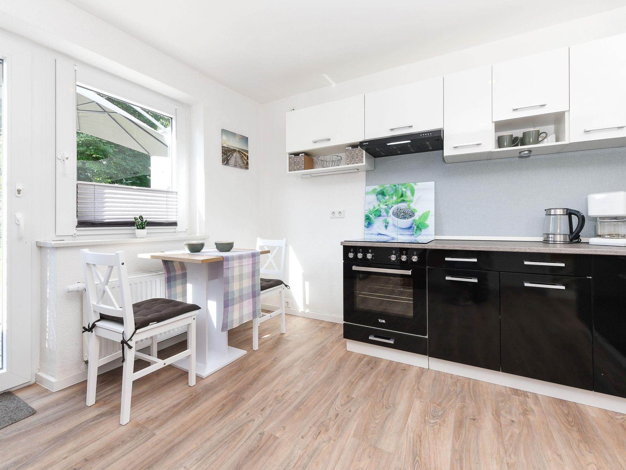 Weiter Highlights der Wohnung sind die Küche mit Backofen, die ruhige Lage mit Terrasse, der kostenlose WLAN Internetzugang, sowie das moderne Badezimmer mit ebenerdiger Dusche.