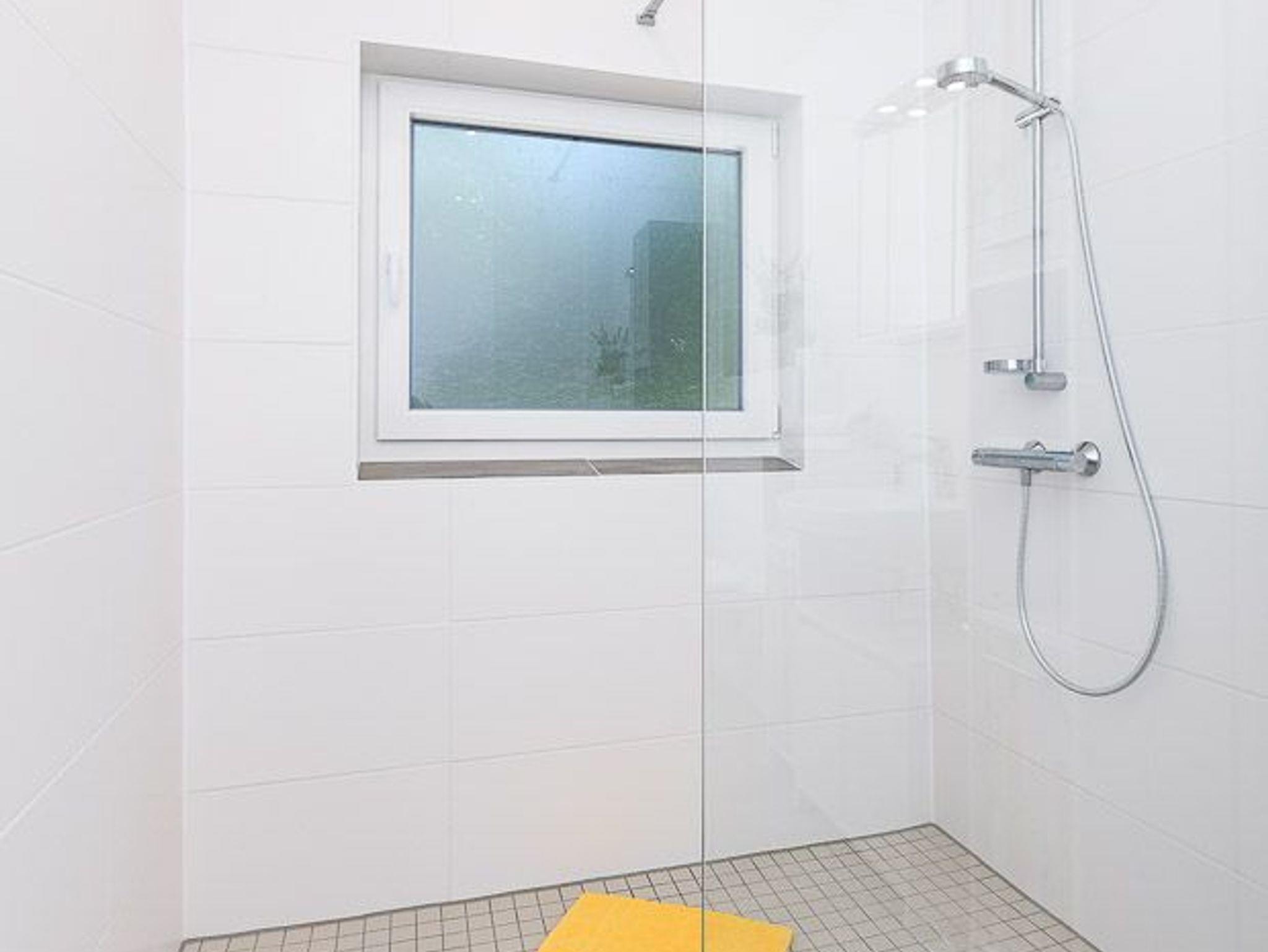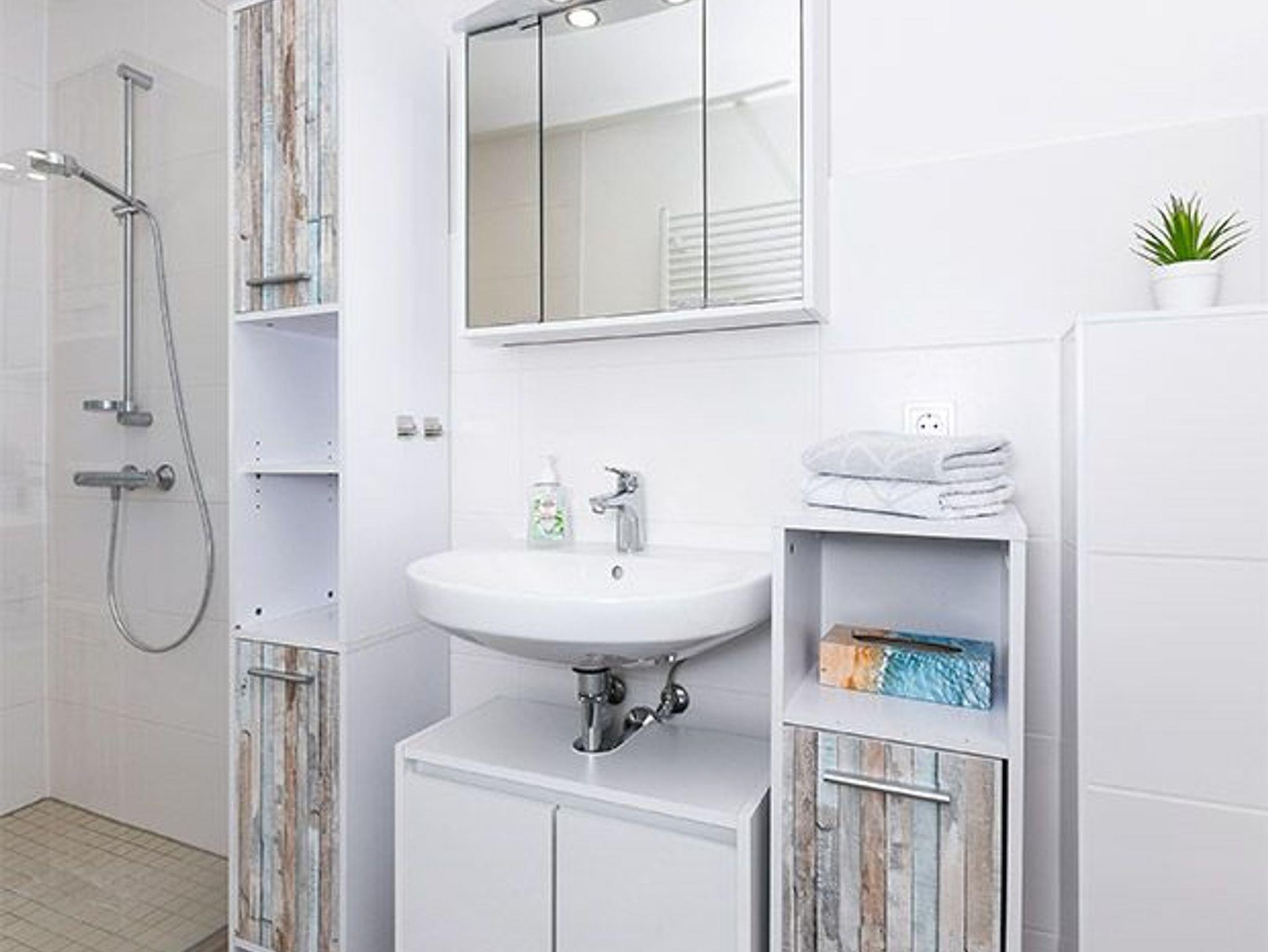 Badezimmer mit Dusche, Waschtisch und WC