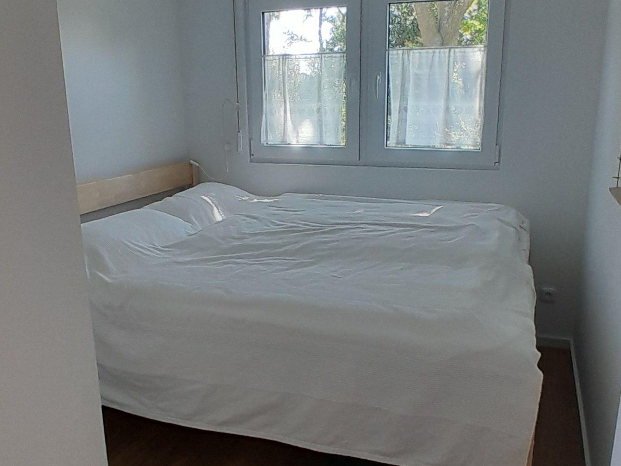 Ein Schlafzimmer mit Doppelbett für erholsame Nächte.