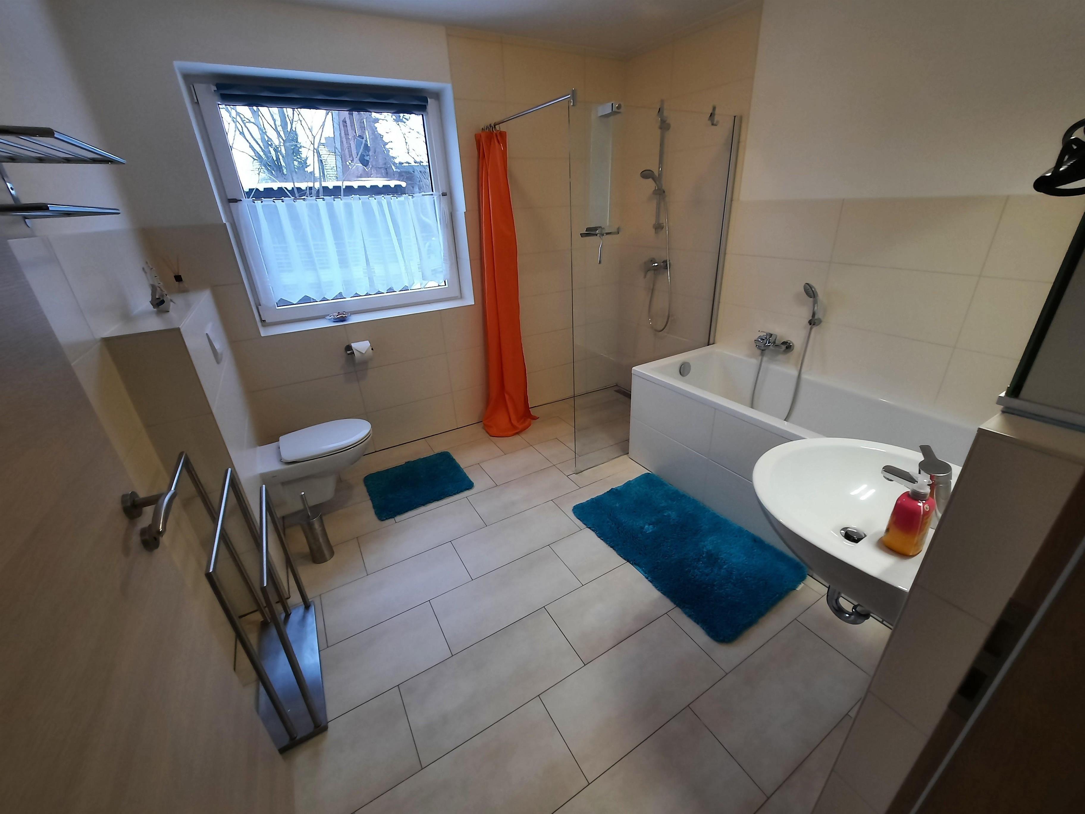 Die Ferienwohnung ist für 4 Personen ausgelegt, barrierearm, rollstuhlgeeignet und allergikerfreundlich. Im gesamten Haus sind die Fußböden gefliest und die ausgelegten Teppichbeläge können problemlos bei Bedarf entfernt werden. Die Wohnung ist mit einer Fußbodenheizung ausgestattet. Das Bad verfügt über Badewanne und Dusche. Die Dusche wie auch das gesamte Bad sind mit Rollstuhl befahrbar. Familien und Naturliebhaber werden sich hier sehr wohl fühlen. Senioren und Familien mit Kindern sind bei uns gleichermaßen willkommen.