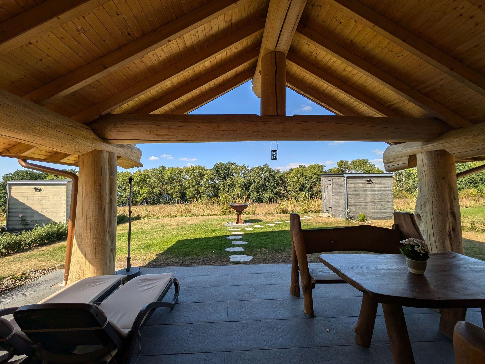 Exklusives Ferienhaus mit finnischem Saunahaus und komplett überdachter