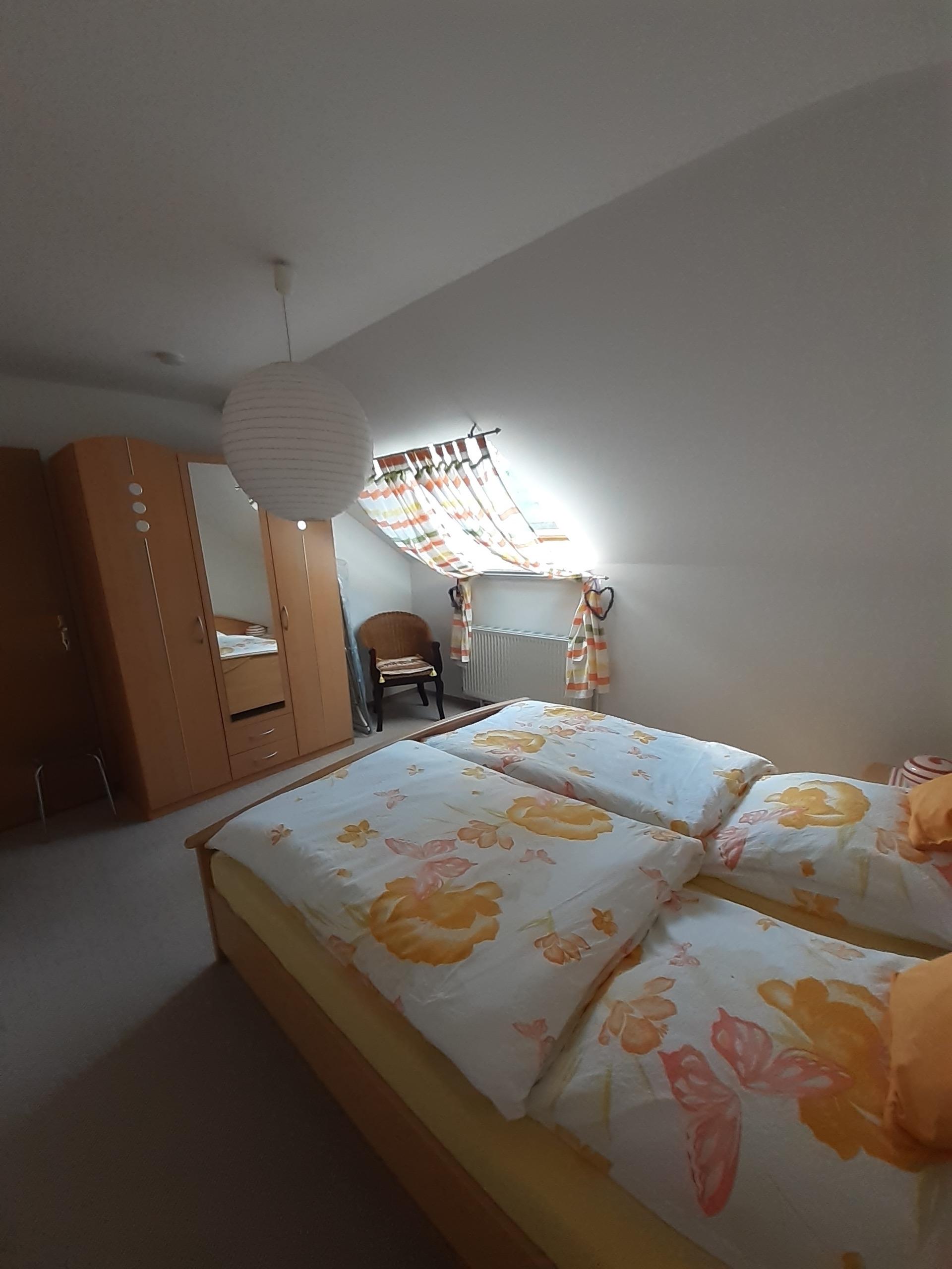 Die komfortabel und modern eingerichtete Wohnung befindet sich im Dachgeschoß unseres Einfamilienhauses. Ruhige Wohnlage 100 m bis zum See, 2 km zur nächsten Reitanlage.