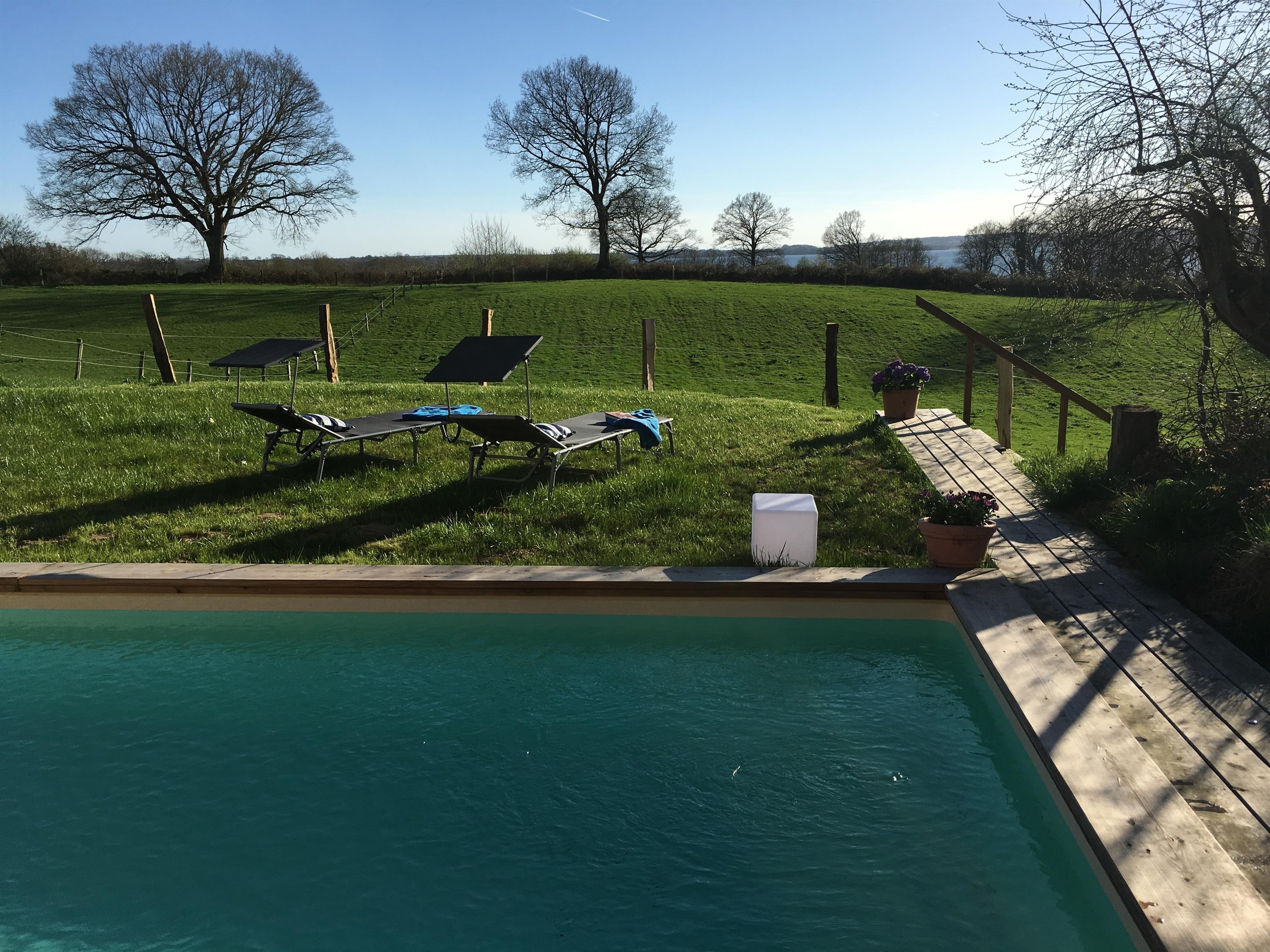 Besonderes Highlight: Der solar beheizte Pool (25 C) im Garten lädt ein zum Badevergnügen von Mai bis September(8m x 4m, 150 cm tief), besonders interessant auch in der Vor- u. Nachsaison. Liegen und ein Strandkorb laden zum Verweilen ein.