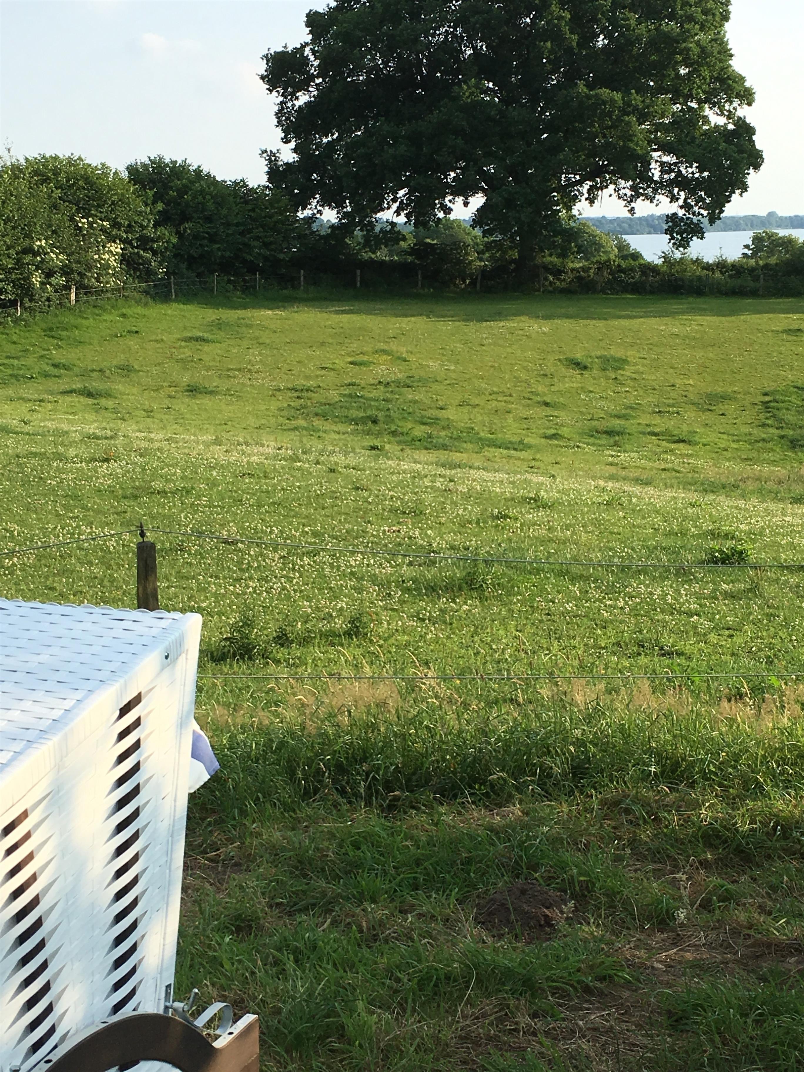 Ein großzügiges Wohn/Schlafzimmer mit Küchenzeile und separatem Duschbad erwartet Sie. Es verfügt über einen gemütlichen Essplatz mit Blick über die Wiesen bis hin zum See und eine Sofaecke. Oder machen Sie es sich im komfortablen Boxspringbett (1,60 x 2m) gemütlich. Für einen entspannten Schlaf stehen 2 verschiedene Kopfkissen zur Auswahl (80x40 und 80x80).