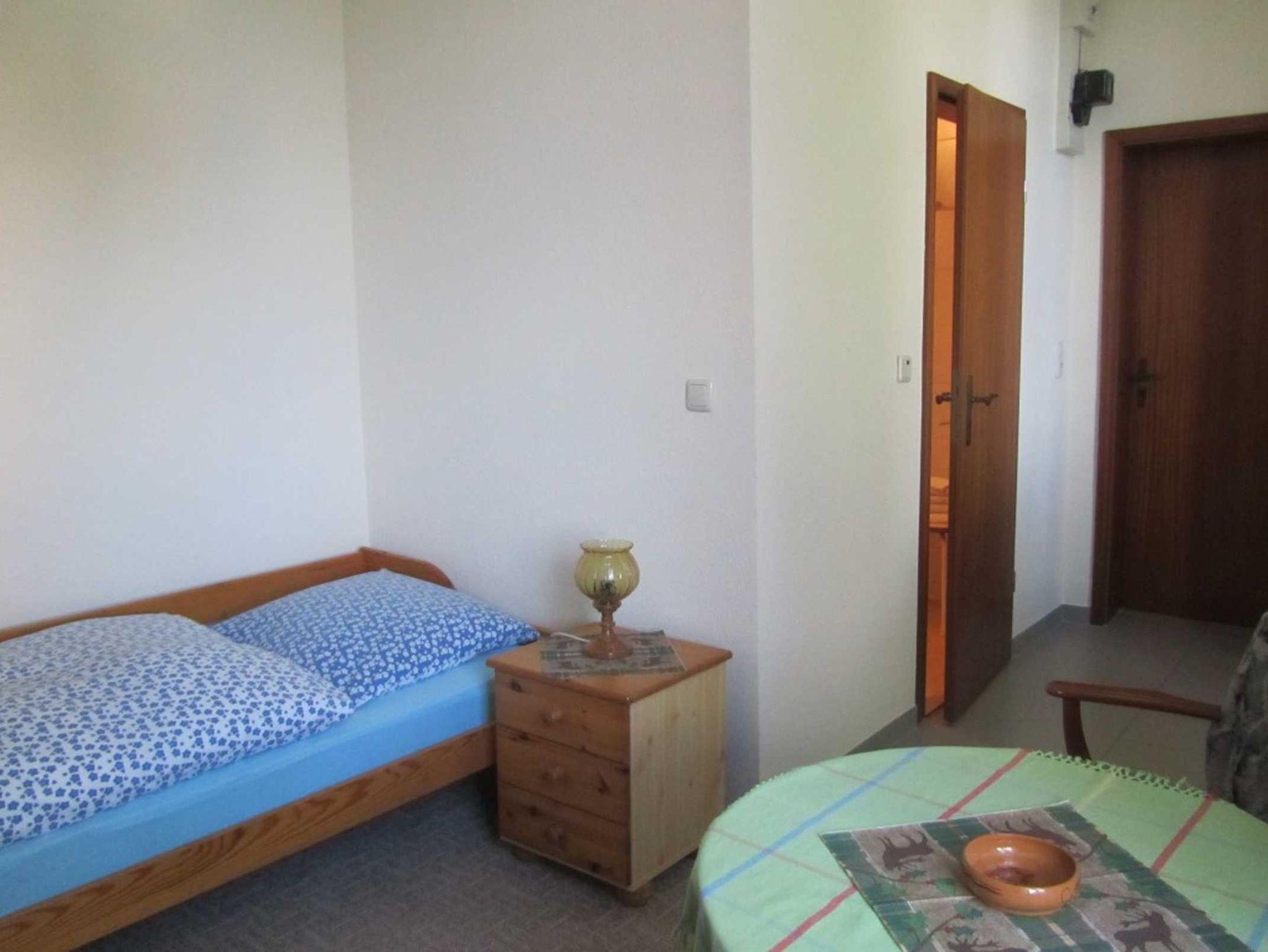 Im Haus des Vermieters befinden sich eine 1-Raum Ferienwohnung mit Küche sowie ein Doppelzimmer mit Dusche/WC. Beide sind über einen separaten Eingang zu erreichen. Im Flurbereich ist eine geräumige Teeküche mit Sitzplätzen integriert, welche im Bedarsfall auch für gemeinsame Abende der Mietparteien genutzt werden kann.