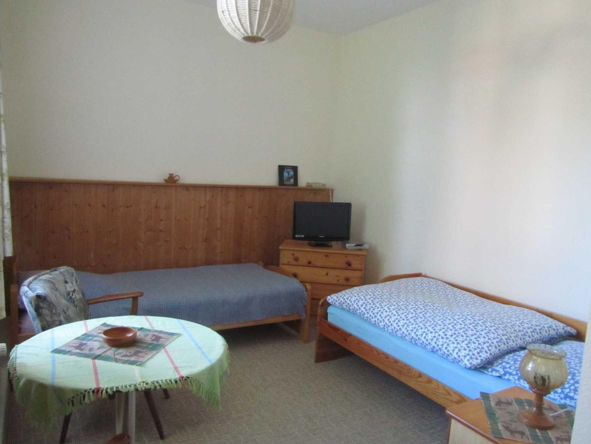 Das Doppelzimmer verfügt über zwei getrennt stehende Betten und einen kleinen Sitzbereich mit zwei Stühlen sowie TV. Das Badezimmer ist mit einer Dusche und WC ausgestattet. Dem Zimmer vorgelagert ist eine geräumige Teeküche mit Sitzbereich, welche ebenfalls genutzt werden kann. Nach Absprache besteht die Möglichkeit auf dem weitläufigem Gelände des Vermieters einen Sitzplatz im Freien zu nutzen oder einen Grill auszuleihen.