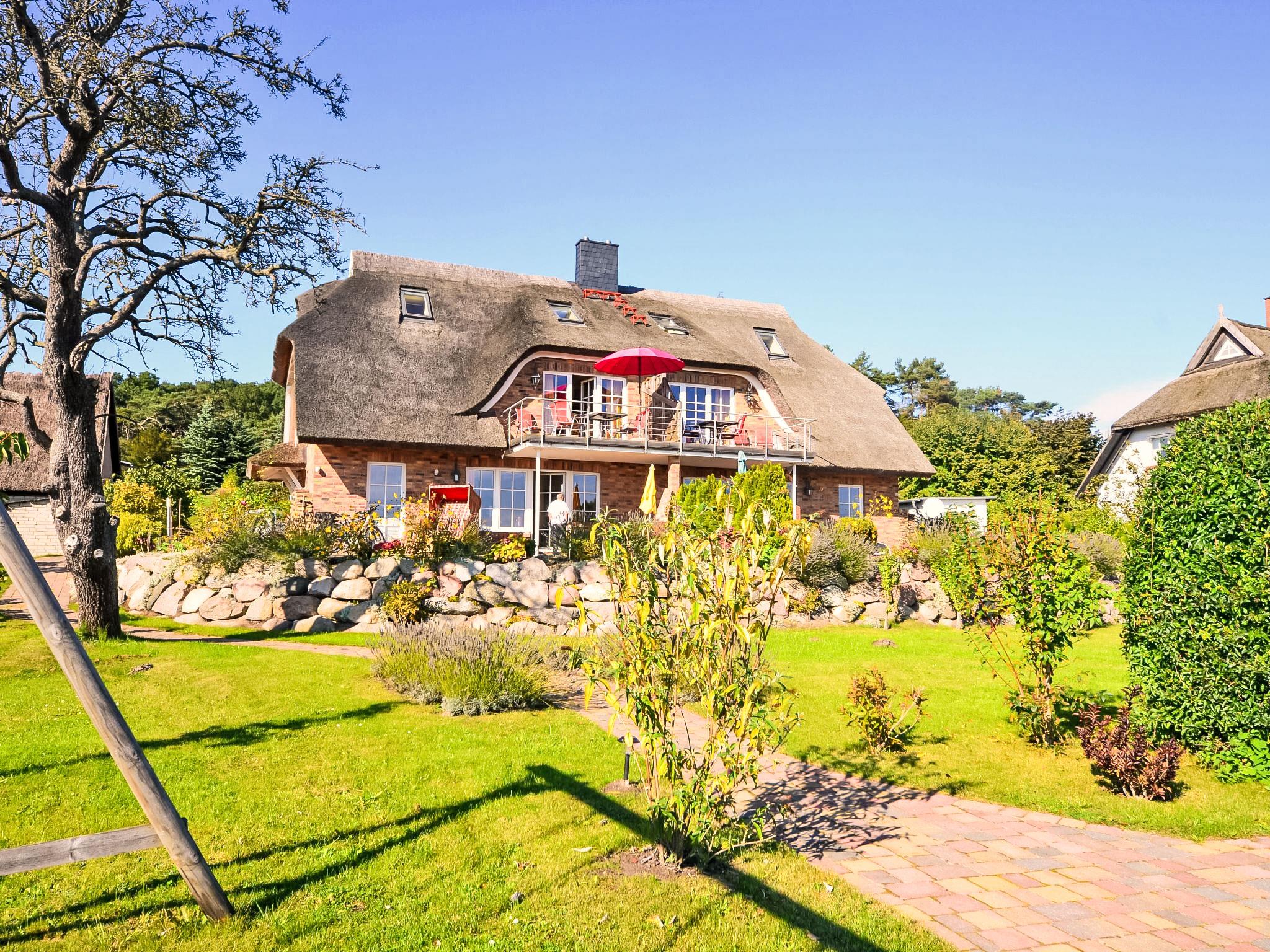 Semi-detached house. In the resort, 500 m from the sea, 2 km from the beach. For shared use: beautiful, well-kept garden. Barbecue, barbecue house. In the house: central heating system. Parking (limited number of spaces) at the house. Grocery 500 m, restaurant, bus stop 300 m, railway station 20 km, sandy beach 2 km, outdoor swimming pool 13 km, indoor swimming pool 13 km, swimming bay 2 km. Golf course (18 hole) 30 km, riding stable 5 km. The two reeded semi-detached houses including two apartments each are located in the first row facing the sea. All apartments offer direct views of the Baltic Sea, the small Gross Zicker harbour and the towns of Thissow and Klein Zicker situated opposite the bay. The holiday apartments have a high-quality and perfectly matching interior. Bicycles for hire.