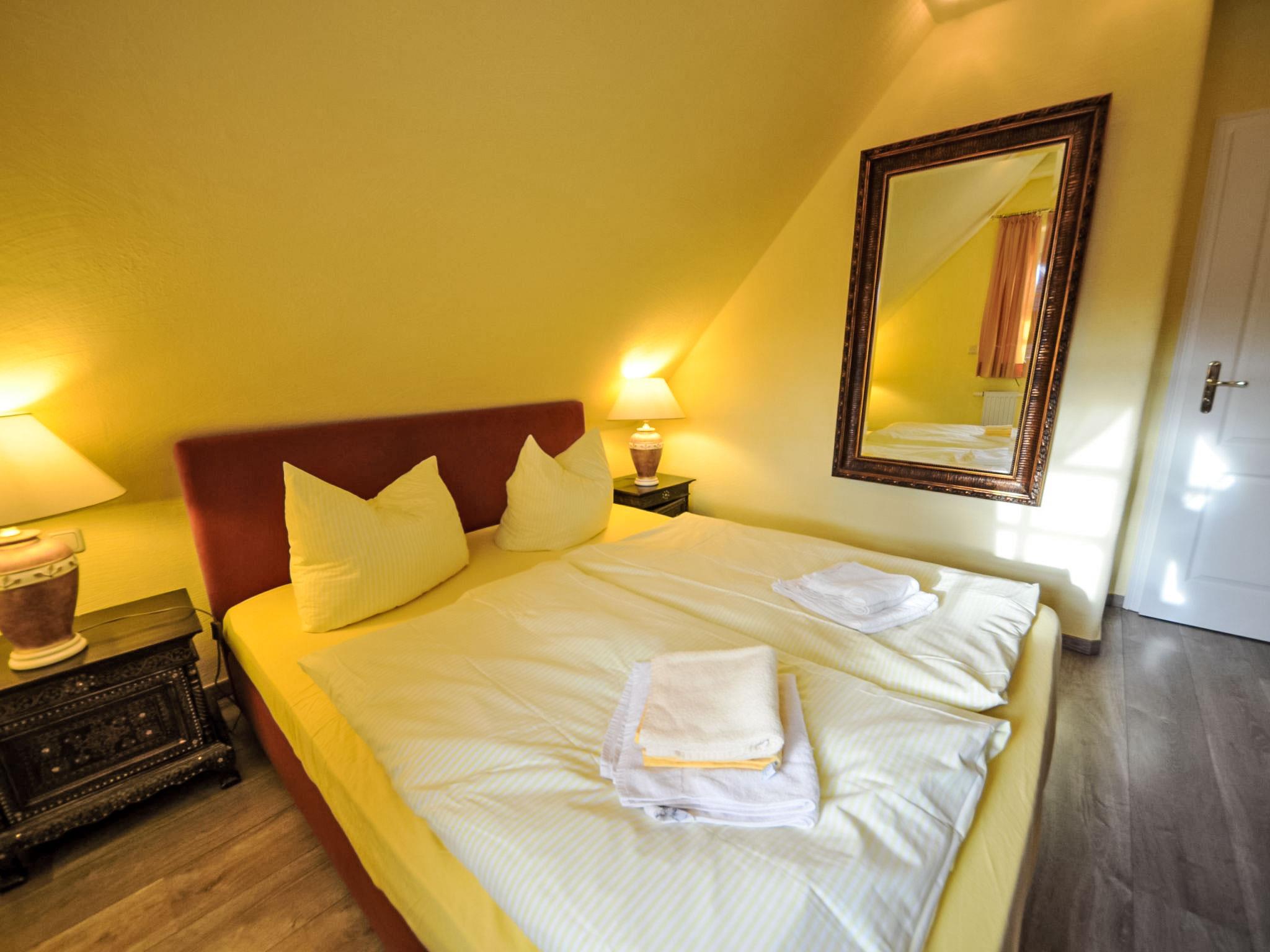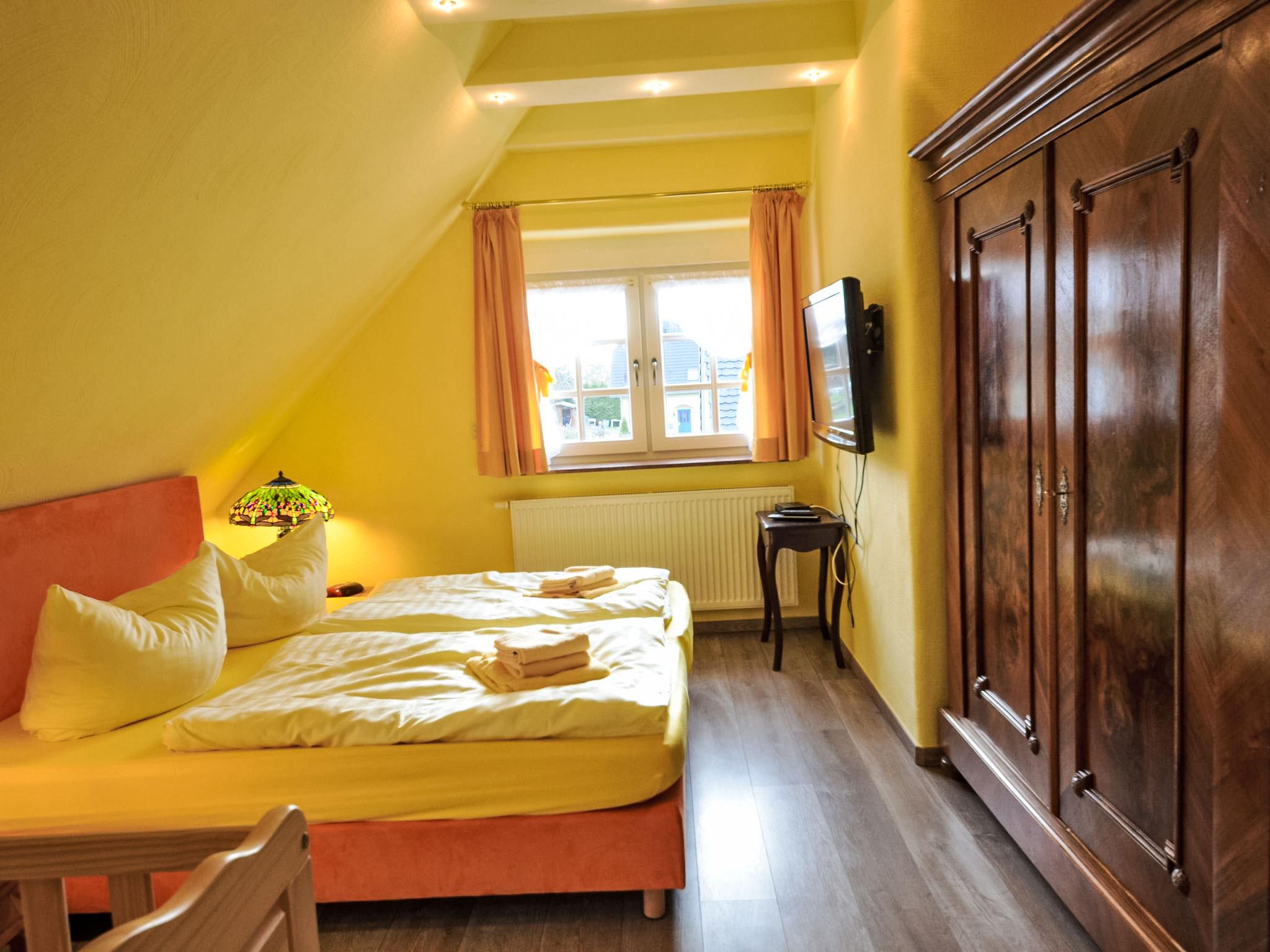 Gager 3 km from Gross-Zicker: Comfortable semi-detached house. On the outskirts, 300 m from the centre of Gager, 300 m from the sea, 3 km from the beach. In the house: sauna, central heating system. Bread roll service possible. Grocery, restaurant 50 m, bus stop "Gager, Am Hafen" 550 m, railway station 21 km, sandy beach 3 km, outdoor swimming pool 14 km, indoor swimming pool 14 km. Golf course (18 hole) 31 km, riding stable 6 km. Both semidetached houses with their own garden part. The ground floor and the bathrooms upstairs have underfloor heating.