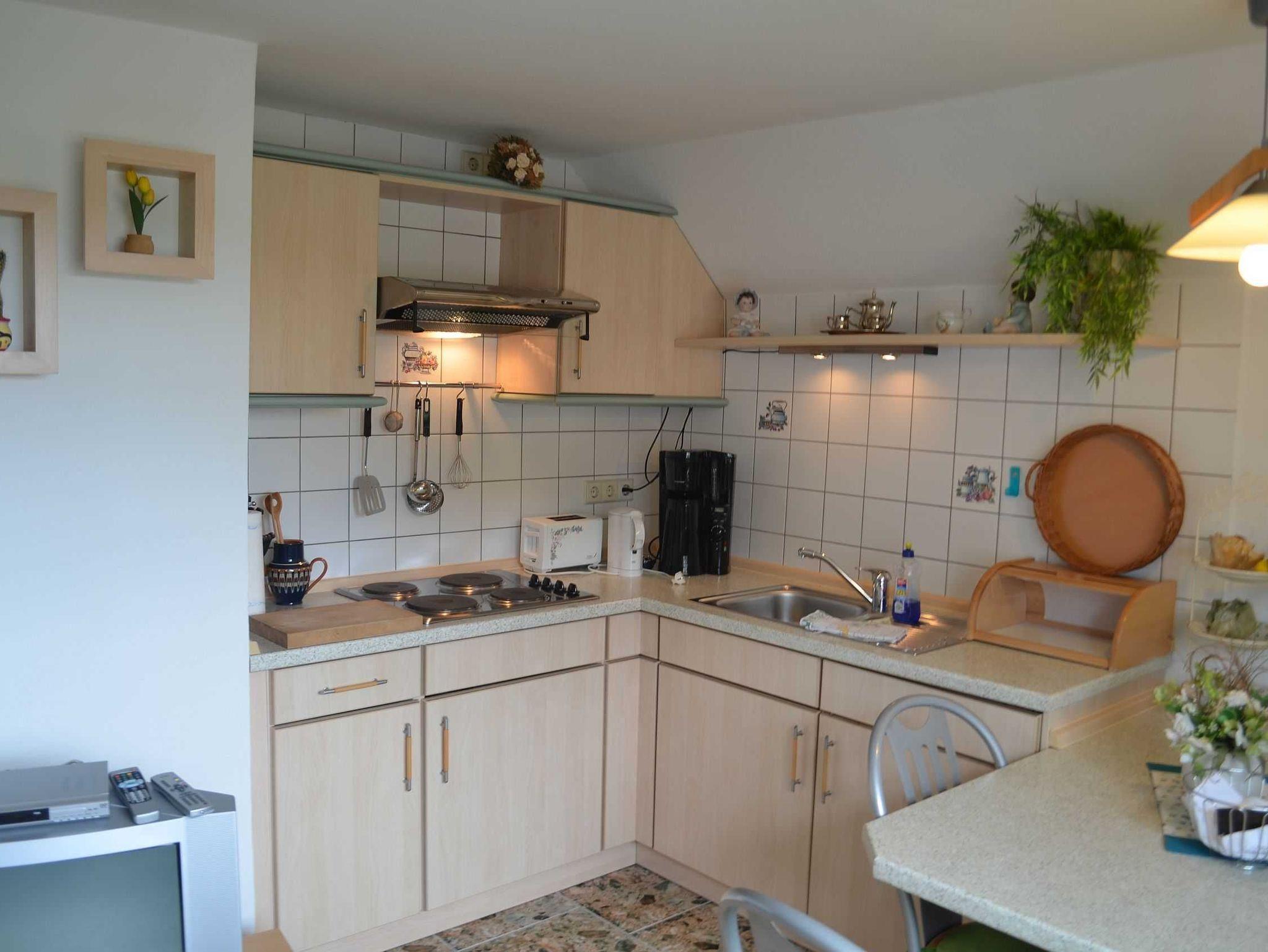 Die gemütliche Ferienwohnung (Nichtraucher) bietet mit seinen ca. 34 qm ausreichend Platz für 2-3 Personen. Der Wohnbereich umfasst eine gemütliche Couchecke (Aufbettung für 3.Person) mit Couchtisch ein Sideboard mit Radio und TV-Gerät. Die angrenzende Einbauküchenzeile mit Essecke bietet Ihnen ein 4 Platten-Herd, Abzugshaube, kleinen Backofen, Spüle, Kaffeemaschine, Wasserkocher, Toaster sowie diverse Küchenutensilien. Das Schlafzimmer verfügt über ein Doppelbett mit Nachtischkonsolen und einen Kleiderschrank. Das geflieste Tageslichtbad verfügt über eine Dusche, WC, Waschtisch und einen Fön. WLAN inkluisve. Die bestuhlte Gemeinschaftsterrasse lädt zum Verweilen ein. Das separate und gemütliche Blockhaus auf dem Grundstück der Vermieter, steht allen Gästen der Pension zur Verfügung. Ein gemütlicher Grillabend findet in der Saison 1 x wöchentlich zusammen mit dem Vermieter statt. Genauere Informationen erhalten Sie vor Ort. Auf Anfrage können Sie vor Ort ebenfalls den Brötchenservice in Anspruch nehmen sowie das Frühstück p.P. für 7,00 Euro dazu buchen. Bis 14 Tage vor Anreise können Sie die Erstausstattung eines Wäschepaketes für 6,00 Euro p.P. dazu buchen bzw. durch eigene ergänzen. Haustiere sind nicht erlaubt.
