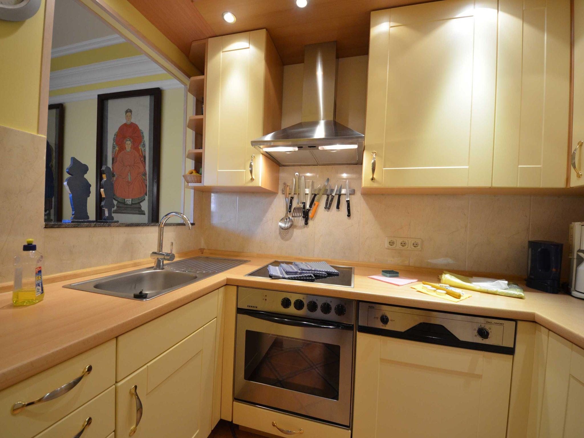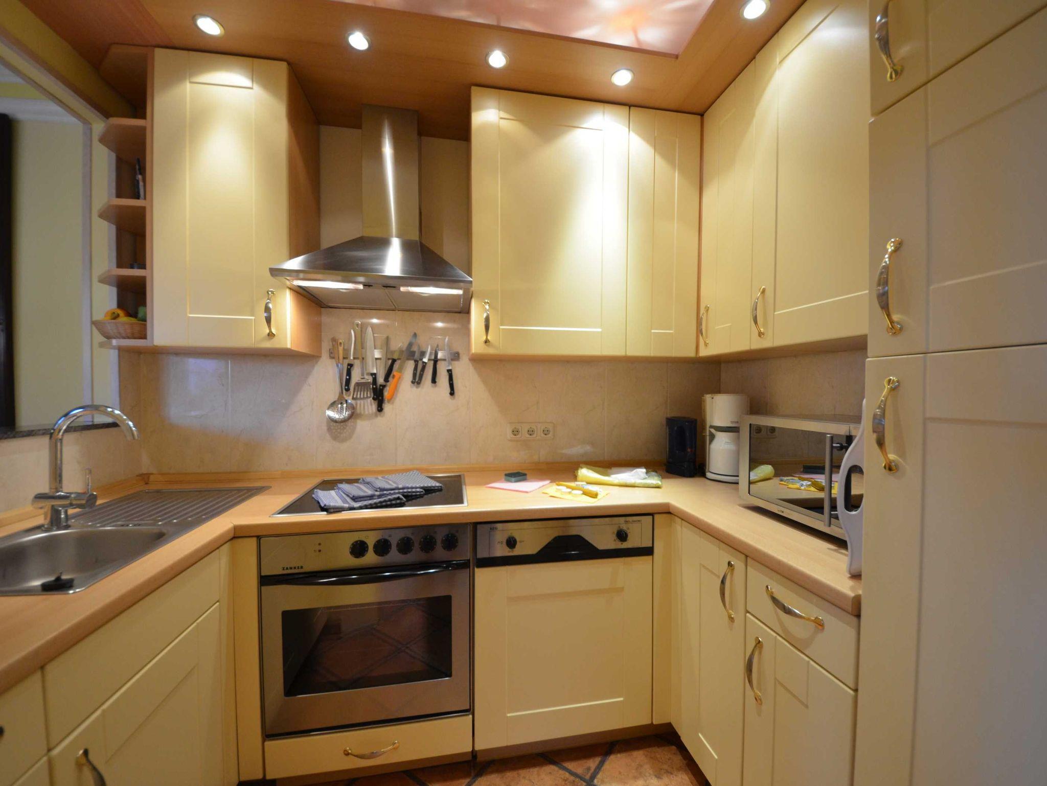 Geschirrspüler, Mikrowelle, Herd mit Ceran - Kochfeld und Backofen, Turmhaube, 2 Kaffeemaschinen, Wasserkocher, Eierkocher, Toaster, Waffeleisen, Mixer,