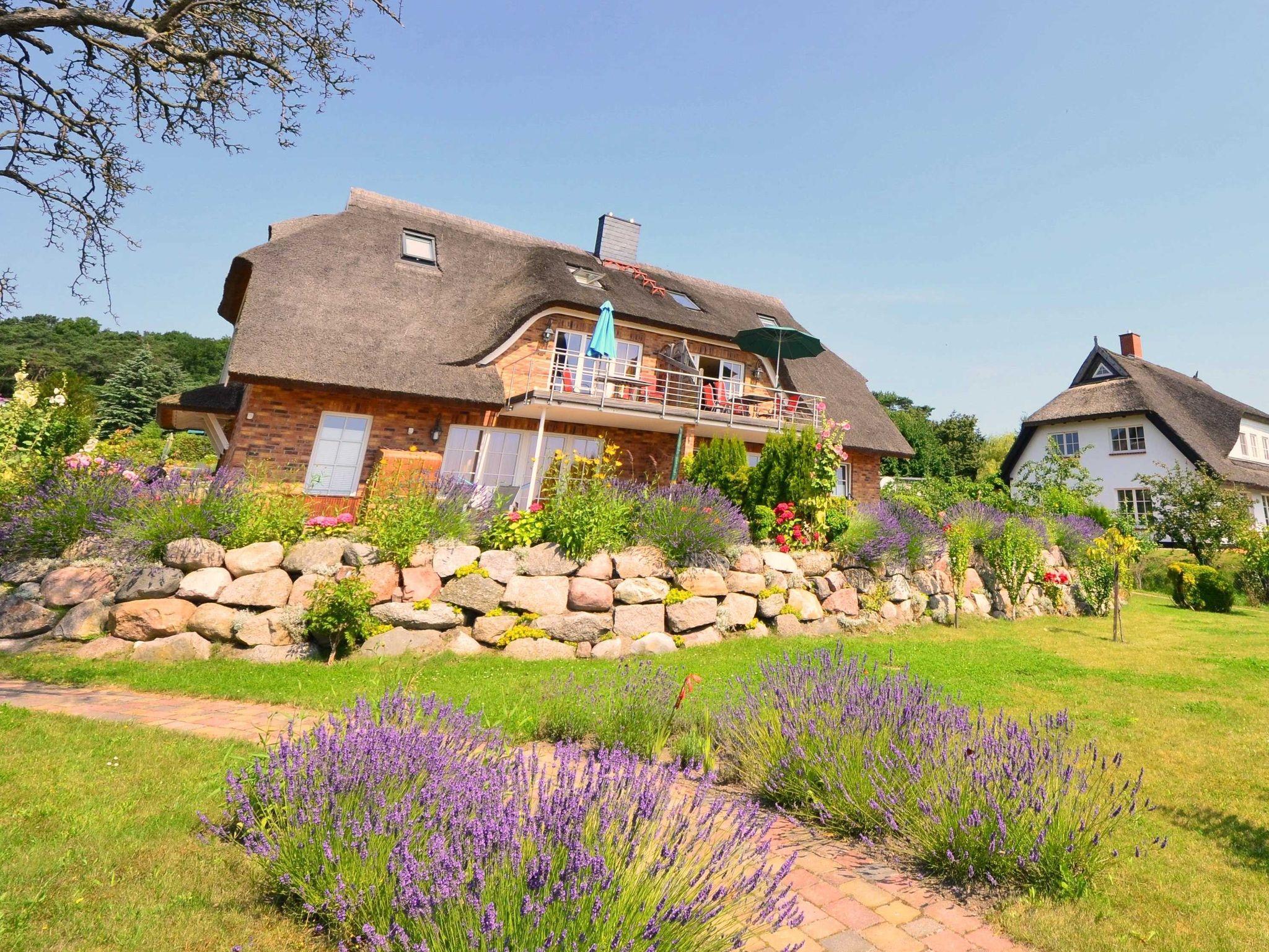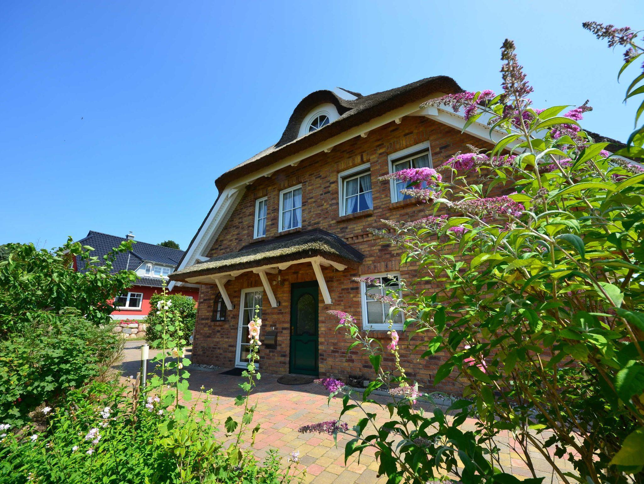 Neue reetgedeckte Maisonnette-Ferienwohnungen (86 m²) mit drei Doppelschlafzimmern, zwei Bädern in einer reetgedeckten und verklinkerten Doppelhaushälfte. Das Haus wurde 2008 neu errichtet.