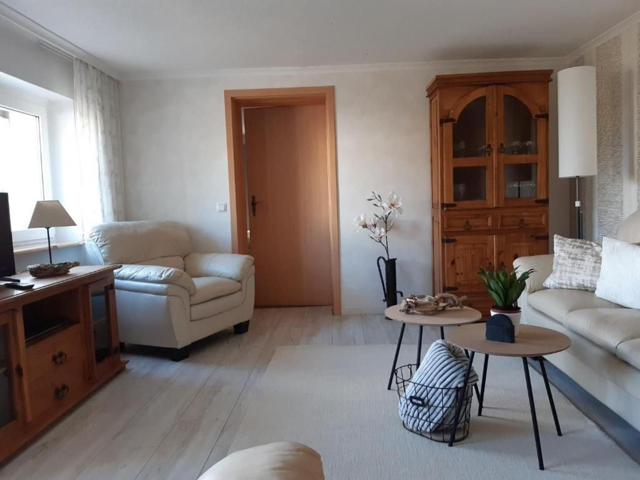 Das 3- Zimmerappartement ist ca. 70 qm groß und ist bis zu 4 Personen belegbar. Die Nichtraucher- Ferienwohnung befindet sich im Erdgeschoss des Hauses. Neben dem Wohnraum und separater Küche mit Essbereich, gibt es zwei Schlafräume mit einem Doppelbett und zwei Einzelbetten und ein Badezimmer mit Dusche und WC.