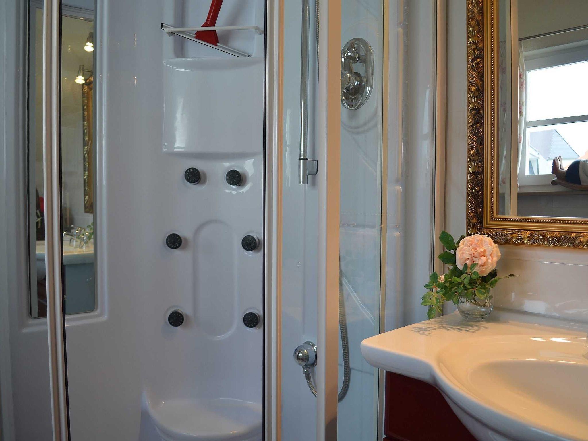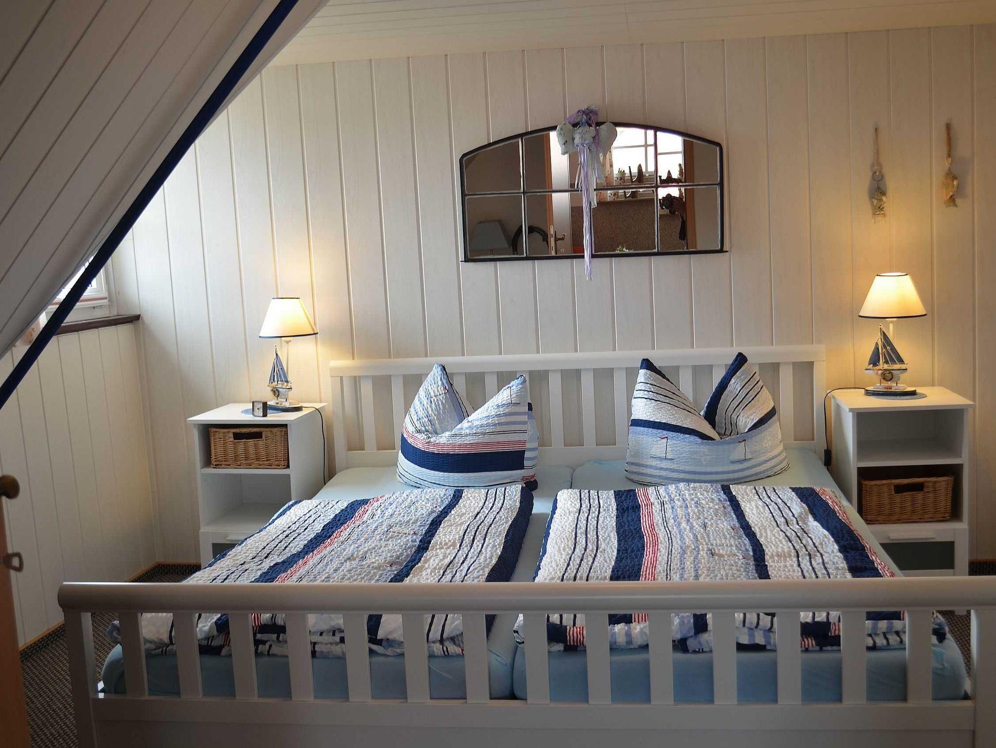 Die gemütliche Ferienwohnung (Nichtraucher) mit Ihrer maritimen Ausstattung bietet mit seinen ca. 33 qm ausreichend Platz für 2-3 Personen. Der Wohnbereich umfasst eine gemütliche Couchecke (Aufbettung für 3.Person) mit Couchtisch ein Sideboard mit Radio und TV-Gerät. Die angrenzende Einbauküchenzeile mit Essecke bietet Ihnen ein 2 Platten-Ceranfeld, Abzugshaube, kleinen Backofen, Spüle, Kaffeemaschine, Wasserkocher, Toaster sowie diverse Küchenutensilien. Das Schlafzimmer verfügt über ein Doppelbett mit Nachtischkonsolen und einen Kleiderschrank. Das geflieste Tageslichtbad verfügt über eine Wellness-Dusche, WC, Waschtisch und einen Fön. WLAN inklusive. Die bestuhlte Gemeinschaftsterrasse lädt zum Verweilen ein. Das separate und gemütliche Blockhaus auf dem Grundstück der Vermieter, steht allen Gästen der Pension zur Verfügung. Ein gemütlicher Grillabend findet in der Saison 1 x wöchentlich zusammen mit dem Vermieter statt. Genauere Informationen erhalten Sie vor Ort. Auf Anfrage können Sie vor Ort ebenfalls den Brötchenservice in Anspruch nehmen sowie das Frühstück p.P. für 7,00 Euro dazu buchen. Bis 14 Tage vor Anreise können Sie die Erstausstattung eines Wäschepaketes für 6,00 Euro p.P. dazu buchen bzw. durch eigene ergänzen. Haustiere sind nicht erlaubt.