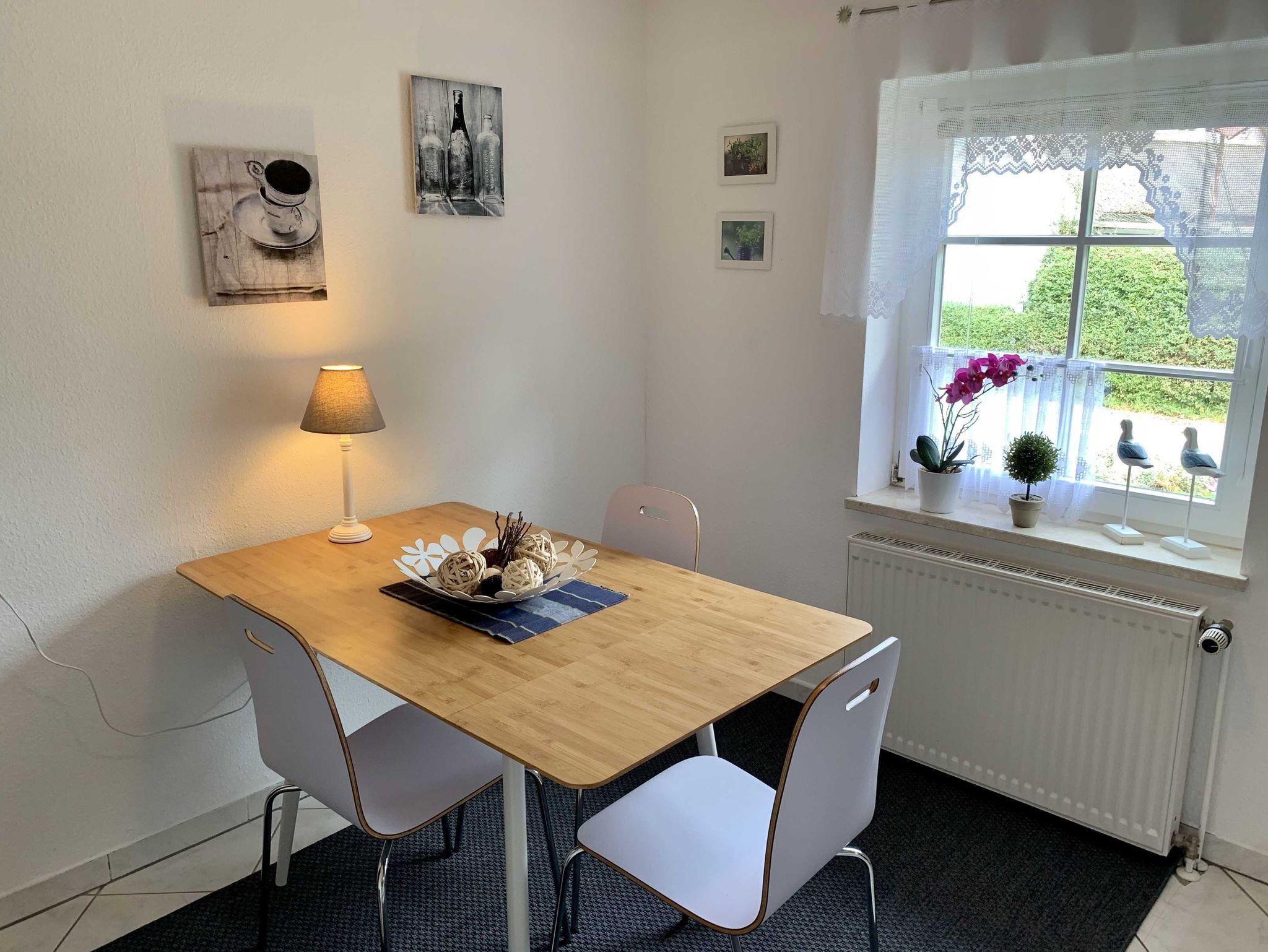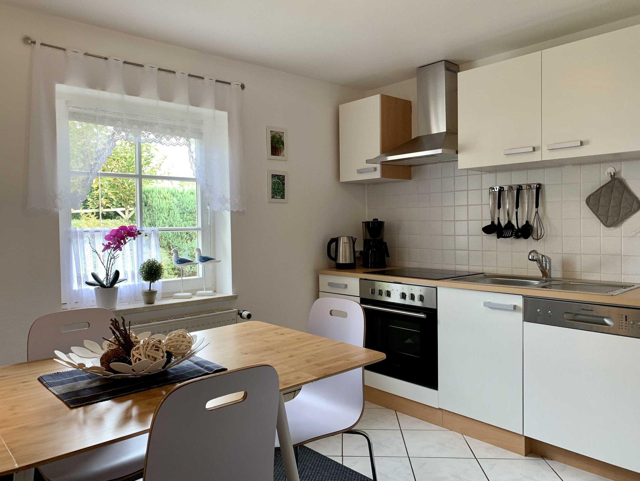 In der Ferienwohnung befindet sich eine Küche mit Essbereich sowie ein Duschbad.