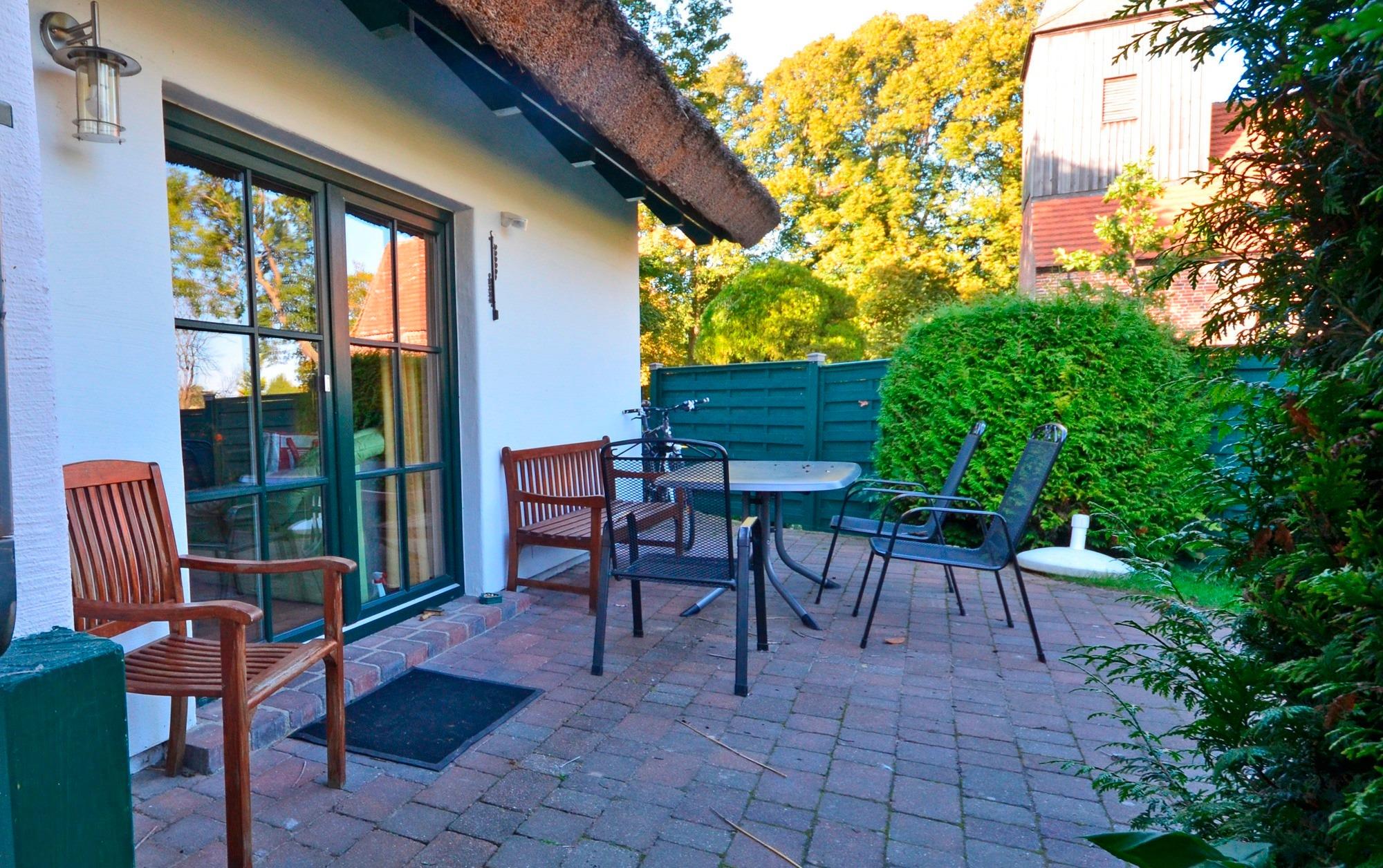 Die Reet-Dacheindeckung sowie die Sprossenfenster vermitteln eine gemütliche Atmosphäre und passen zum allgemeinen Charakter des Dorfes. Der Eckhausteil hat einen eigenen