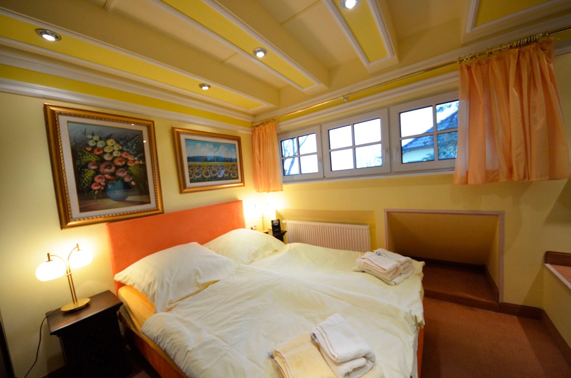 Doppelbetten jeweils 160x200 und 180x200, mit aufgezogener Bettwäsche. Radiowecker, mit Bildern dekoriert. Große Ganzkörperspiegel. Schlafzimmer ein Babybett 70x140 (kostenlos) mit aufgezogener Bettwäsche.