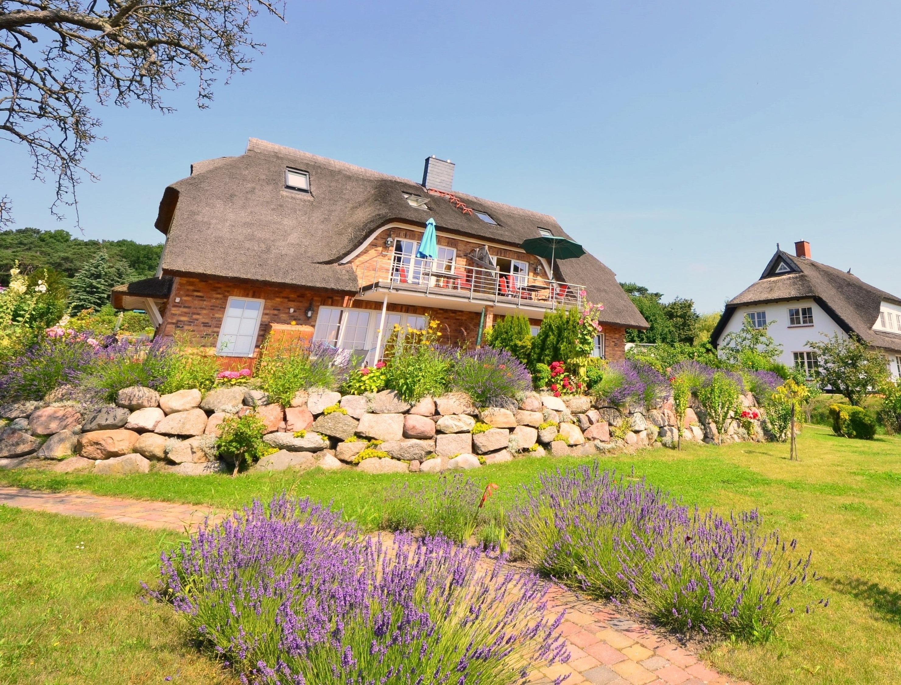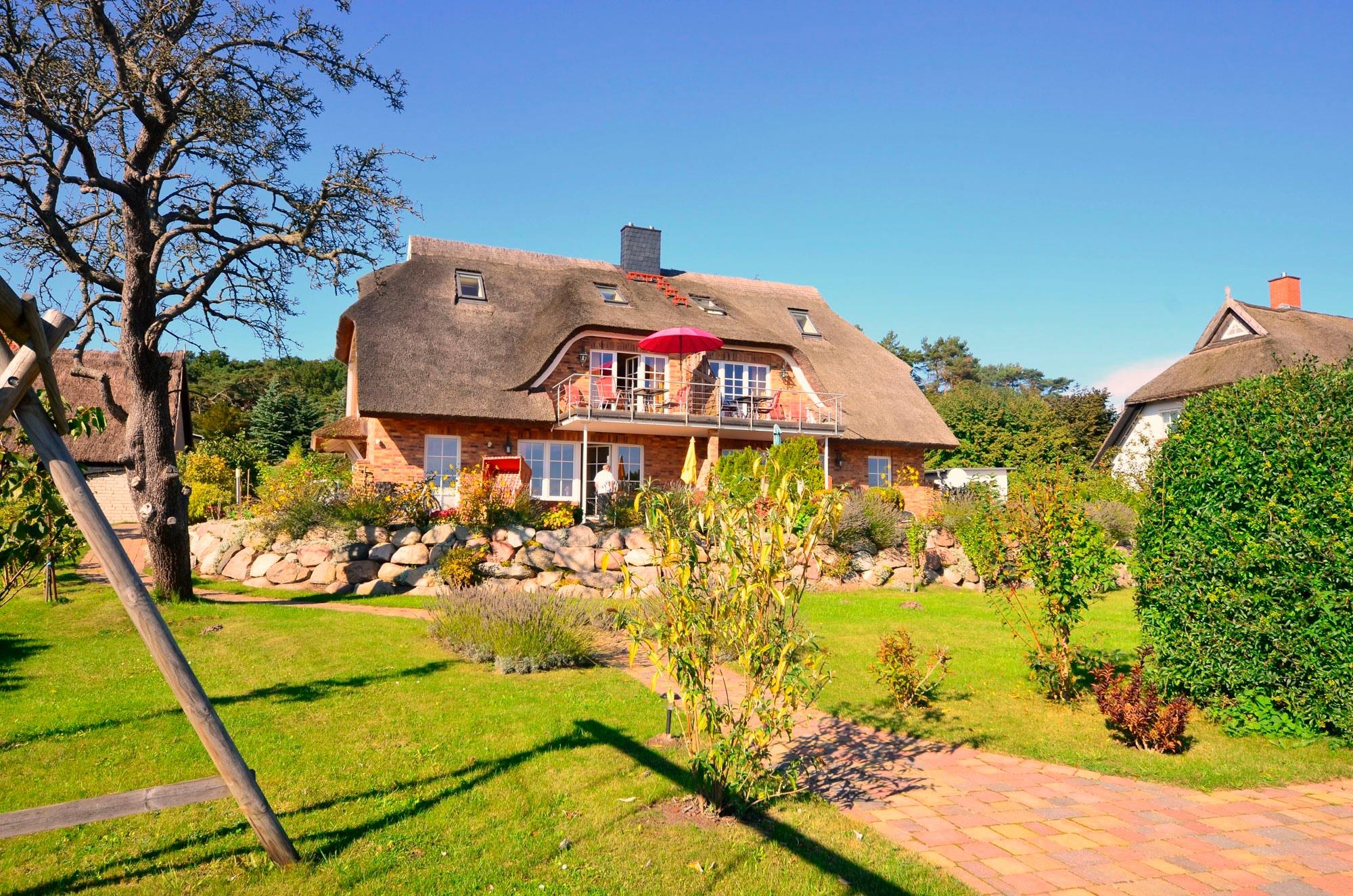Ferienwohnung "Sonnenkamp" im Obergeschoß der 2008 neu errichteten reetgedeckten und verklinkerten Doppelhaushälfte in Groß Zicker/Halbinsel Mönchgut auf Rügen, Boddenstr. 8B.