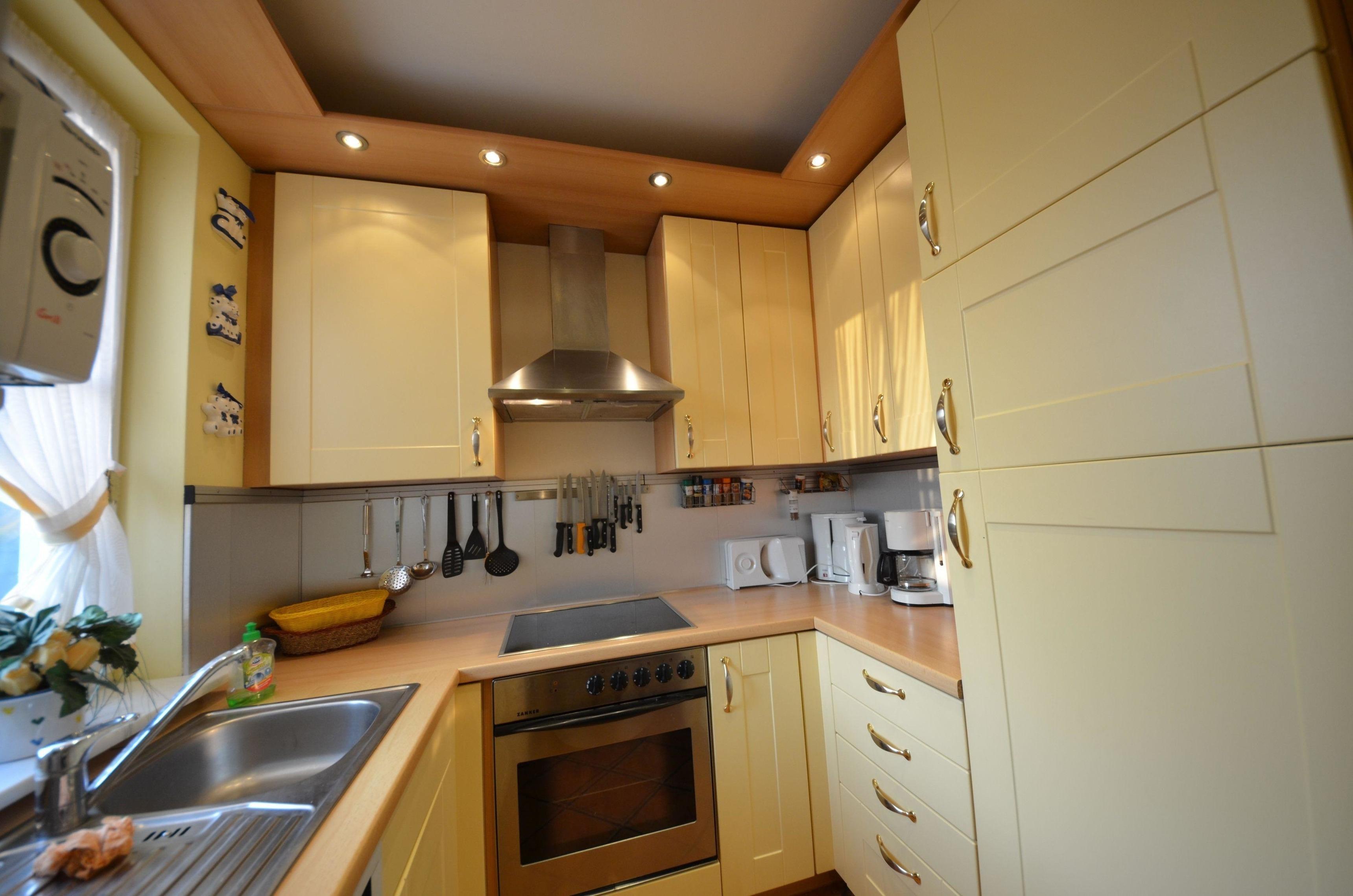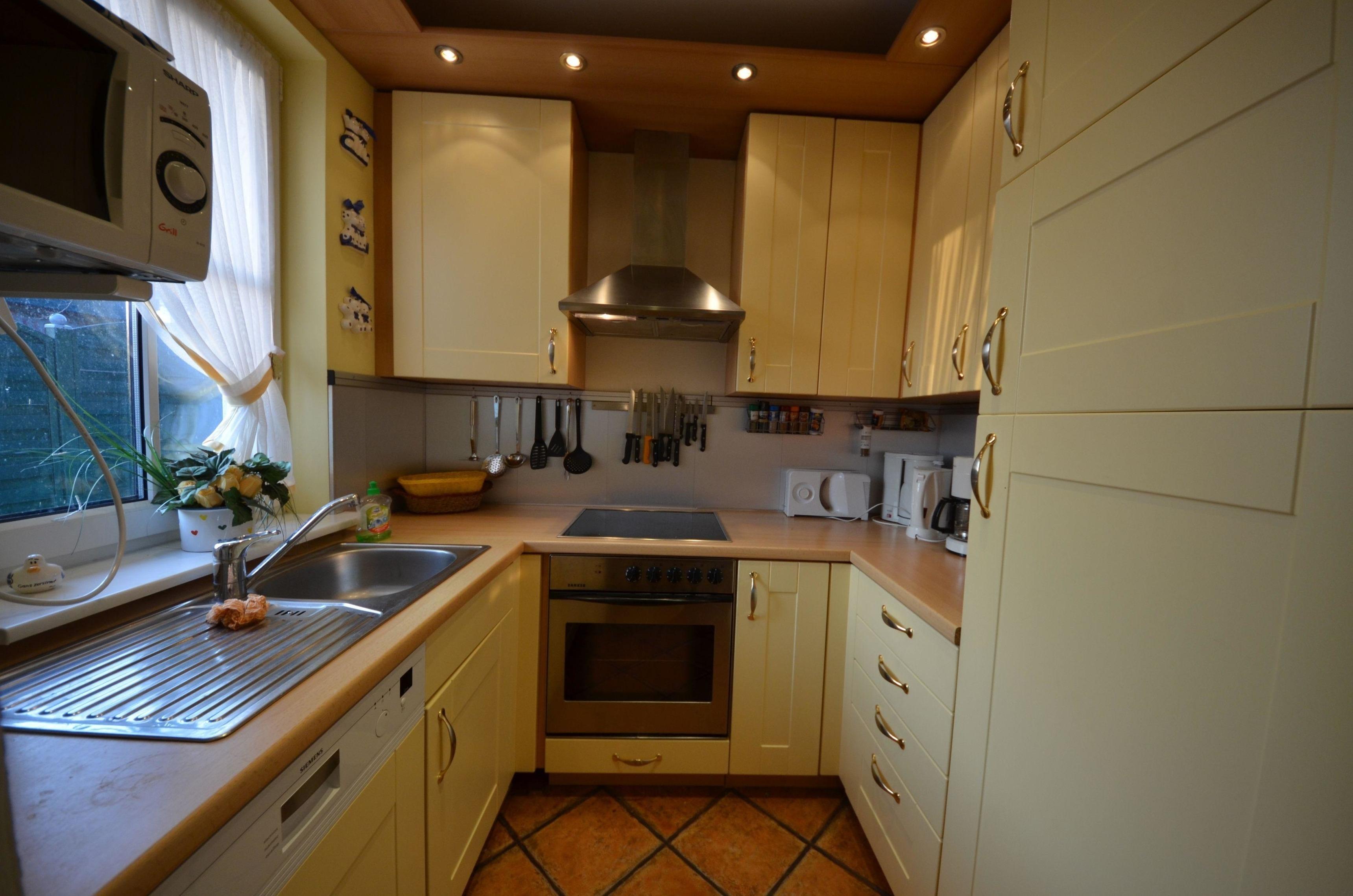 Fußbodenheizung, schöne moderne Einbauküche in arktisgelb, Geschirrspüler, Mikrowelle,