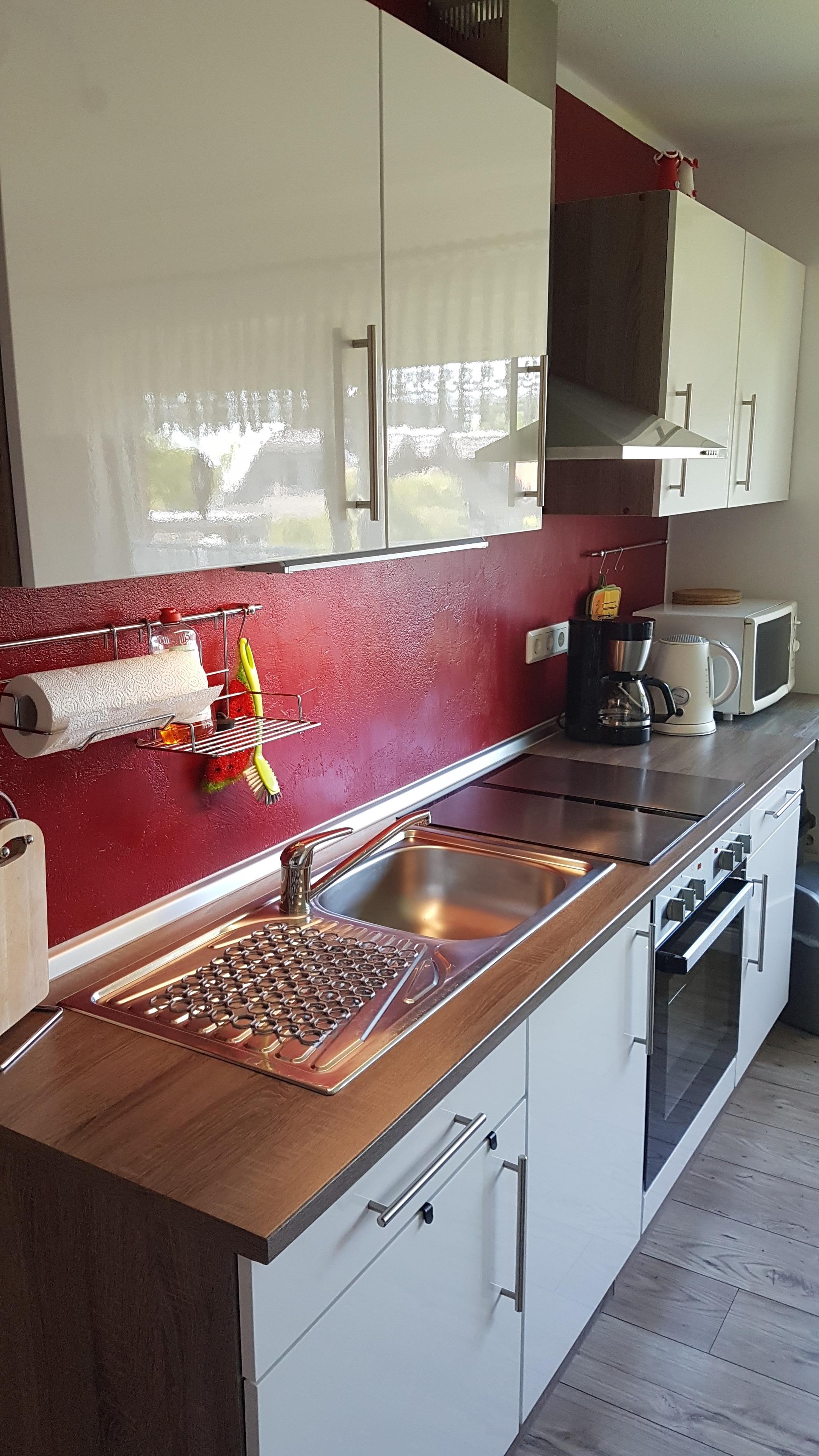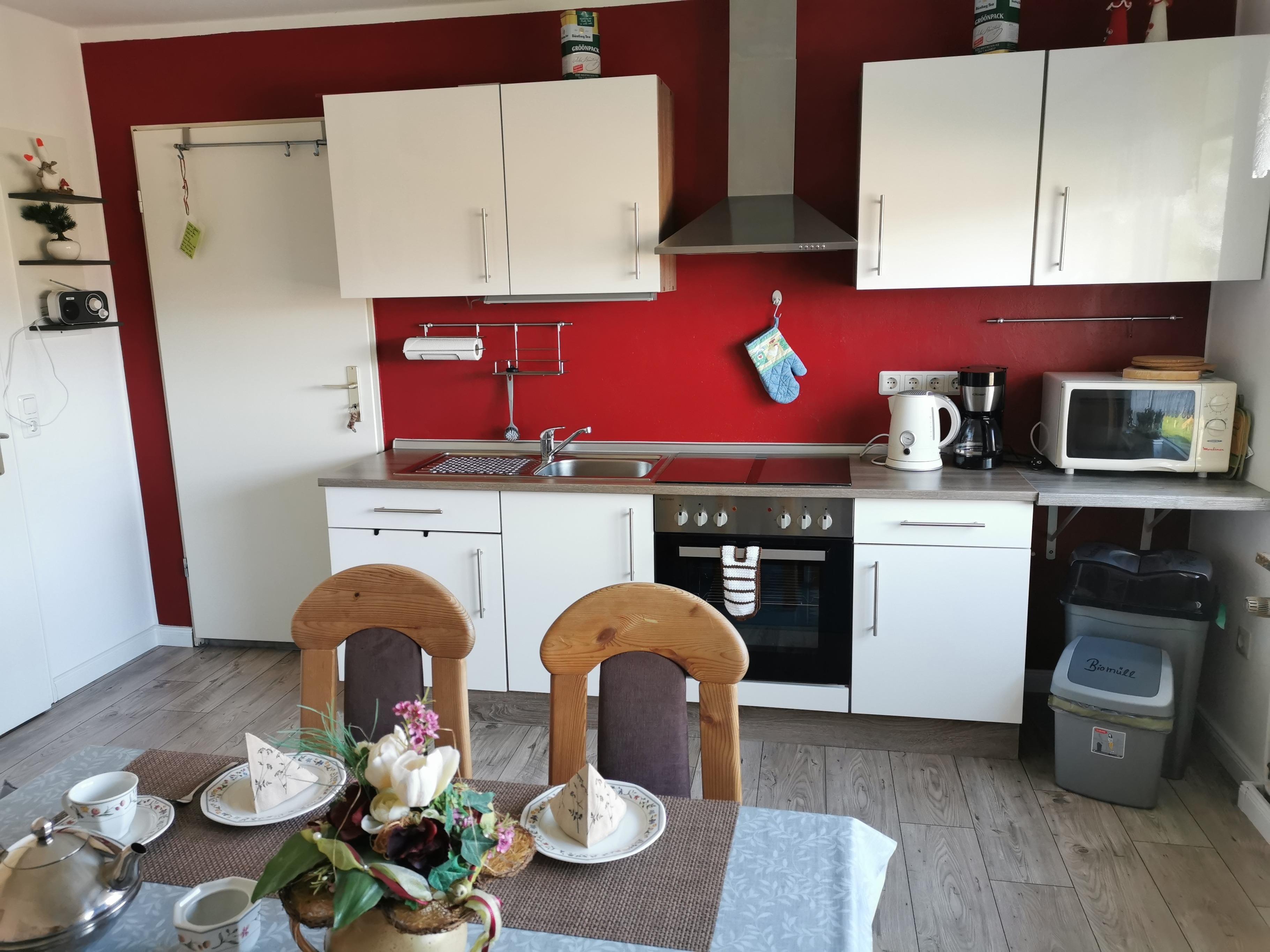 Wasserkocher, Kaffeemaschine, Geschirr, Toaster, Microwelle usw. alles vorhanden.