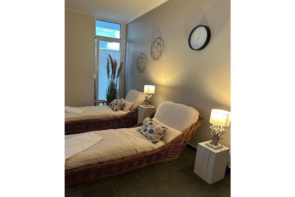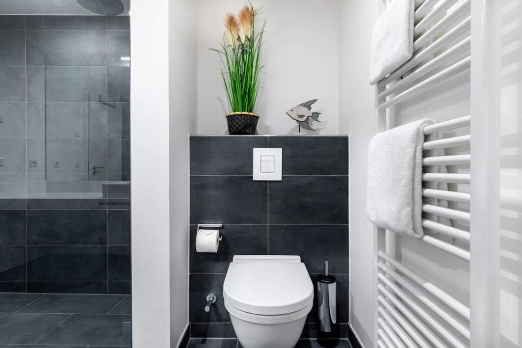 Die 58 m² große 2-Zimmer Ferienwohnung direkt am Strand mit Meerblick ist für bis zu 4 Personen geeignet. Genießen Sie den sonnigen und überdachten Balkon in Süd-West-Lage. Ihr Vierbeiner ist herzlich willkommen! Die Wohnung befindet sich im im zweiten Obergeschoss (Aufzug vorhanden) der Apartmentanlage Meerblickvilla im Ostseeheilbad Großenbrode. Das Apartment ist barrierearm und verfügt über Fußbodenheizung und bodentiefe Fensterflächen, kostenfreies WLAN und eine voll ausgestattete offene Küche mit Geschirrspüler. Im modern-behaglichen Wohn-Essbereich befindet sich eine Doppelschlafcouch (1,60 x 1,95 m) und ein großer Flatscreen-TV. Das separate Schlafzimmer hat zwei bequeme Boxspringbetten und ist mit einem weiteren Flatscreen-TV ausgestattet. Das stilvolle Badezimmer verfügt über eine ebenerdige Regendusche, WC, Waschtisch mit Föhn, Handtuchheizkörper und Fußbodenheizung. Der Saunabereich mit finnischer Sauna, Biosauna und Ruheraum ist selbstverständlich ohne zusätzliche Gebühren nutzbar. Ein Tiefgaragenstellplatz sowie Bettwäsche und Handtücher können sehr gerne auf Wunsch hinzu gebucht werden. Ein Waschraum mit Münzwaschmaschinen und -trocknern runden das Angebot ab.