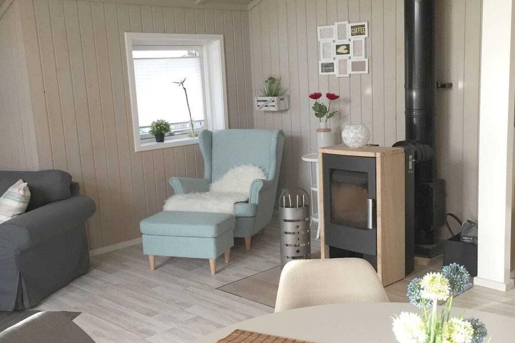 Vores danske sommerhus ligger 5 minutter fra stranden og den store promenade. Feriehuset er lyst og venligt indrettet i skandinavisk stil. Der er to soveværelser med dobbeltsenge (madrasser 160/200), et soveværelse med enkeltseng (funktionel seng: enkelt eller dobbelt / madrasser 2x80/200). Ideel til 2-6 personer. Boligarealet strækker sig over 95m². Køkkenet er åbent og kombineret med spisestue og stue. I stuen finder du et dejligt sofahjørne samt fladskærms-tv og brændeovn. Herfra har I udgang til den delvist overdækkede terrasse, hvor I kan sidde dejligt, selvom vejret ikke er helt til det. Udstyret omfatter også en vaskemaskine og en babyseng (Stardust model) fra Bugaboo.