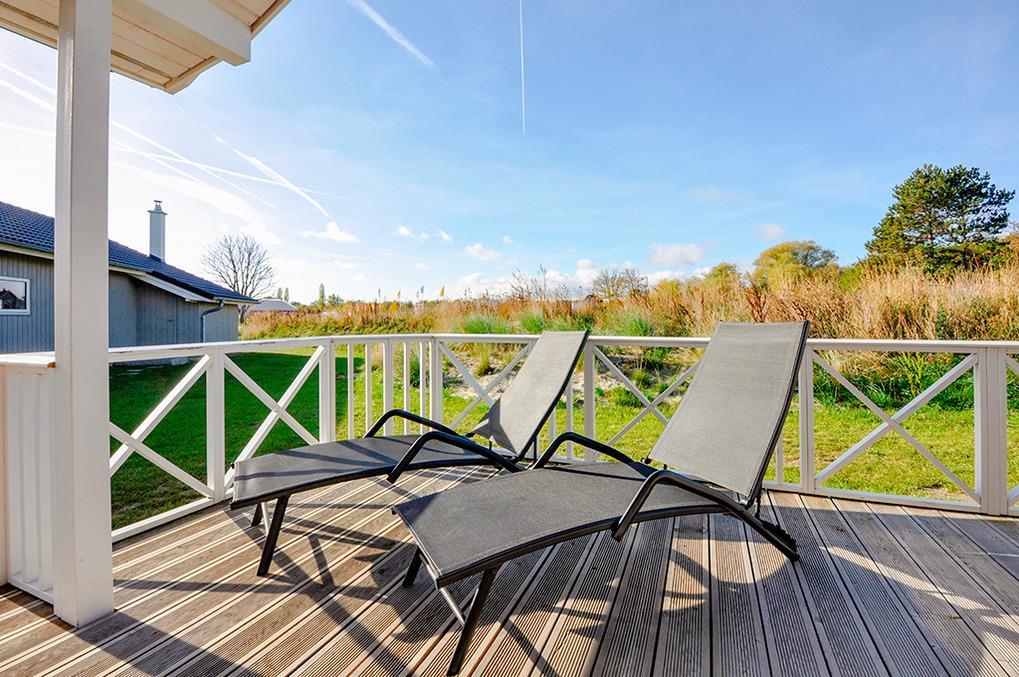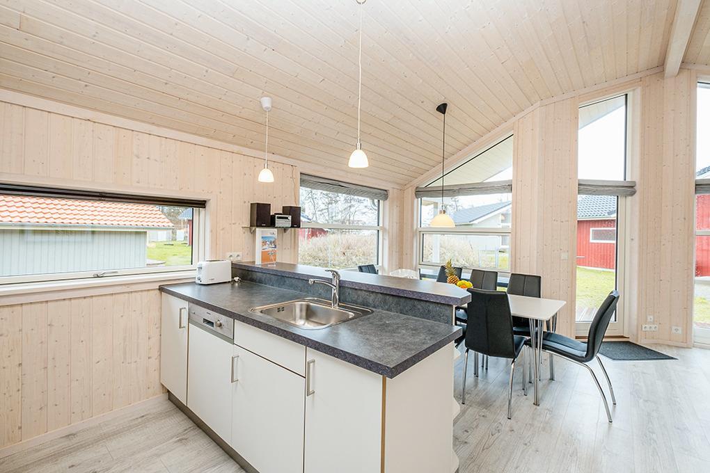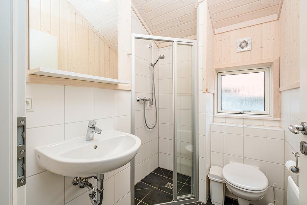 Haus: Gepflegtes Ferienresort mit farbenfrohen skandinavischen Ferienhäusern. Alle Ferienhäuser mit Sauna und Kaminofen. Helle, bis zum Dachgiebel ausgebaute Wohn-/Essbereiche mit großen Fensterfronten. Ansprechende Einrichtung, moderne Komfortausstattung. Internetzugang für bis zu 3 Geräte über W-Lan, Flachbild-Sat-TV, DVD, Radio/CD. Bäder mit Fußbodenheizung, Haarfön, Waschmaschine/Trockner, meist Whirlpool. Elektroheizung. Nichtraucherhäuser. Teilüberdachte Holzterrasse mit Sitz- und Liegemöbeln, Grill. Pkw-Stellplatz am Haus, weitere Stellplätze bei der Rezeption (je nach Verfügbarkeit).