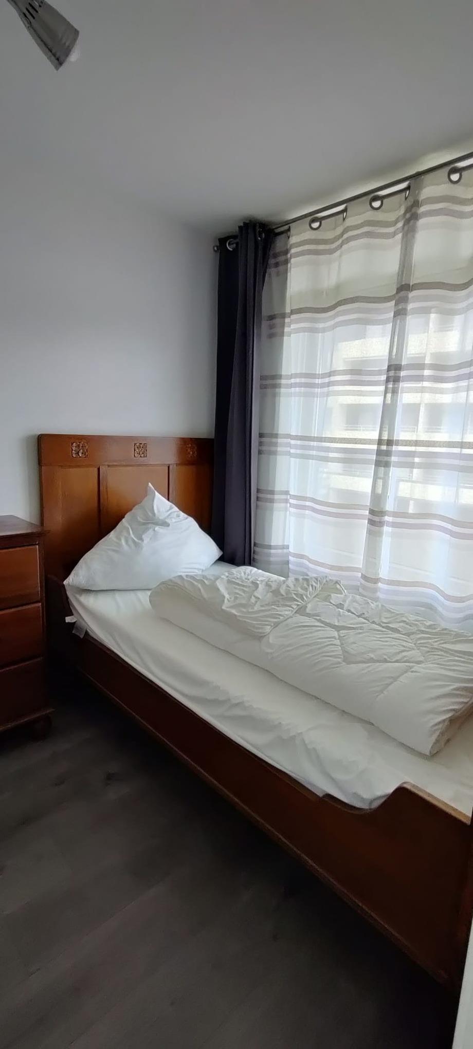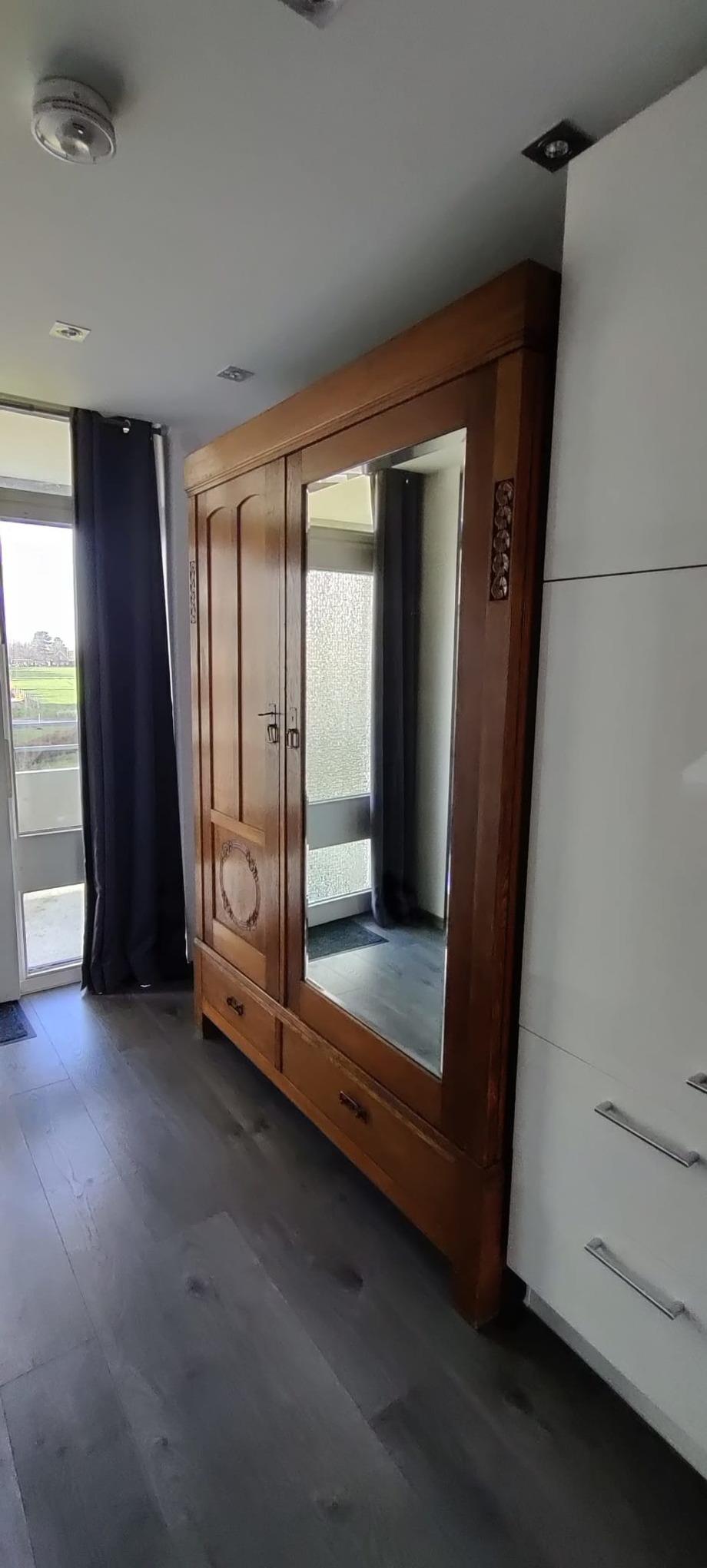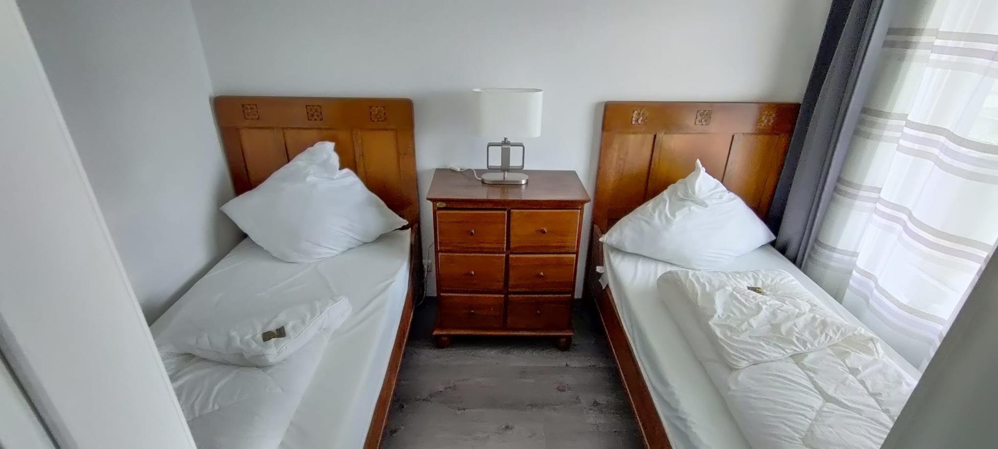 Im Flur befindet sich ein schöner alter Kleiderschrank mit Spiegel. Im kleineren Zimmer stehen 2 Einzelbetten (je 100 x 200 cm) und eine Kommode.