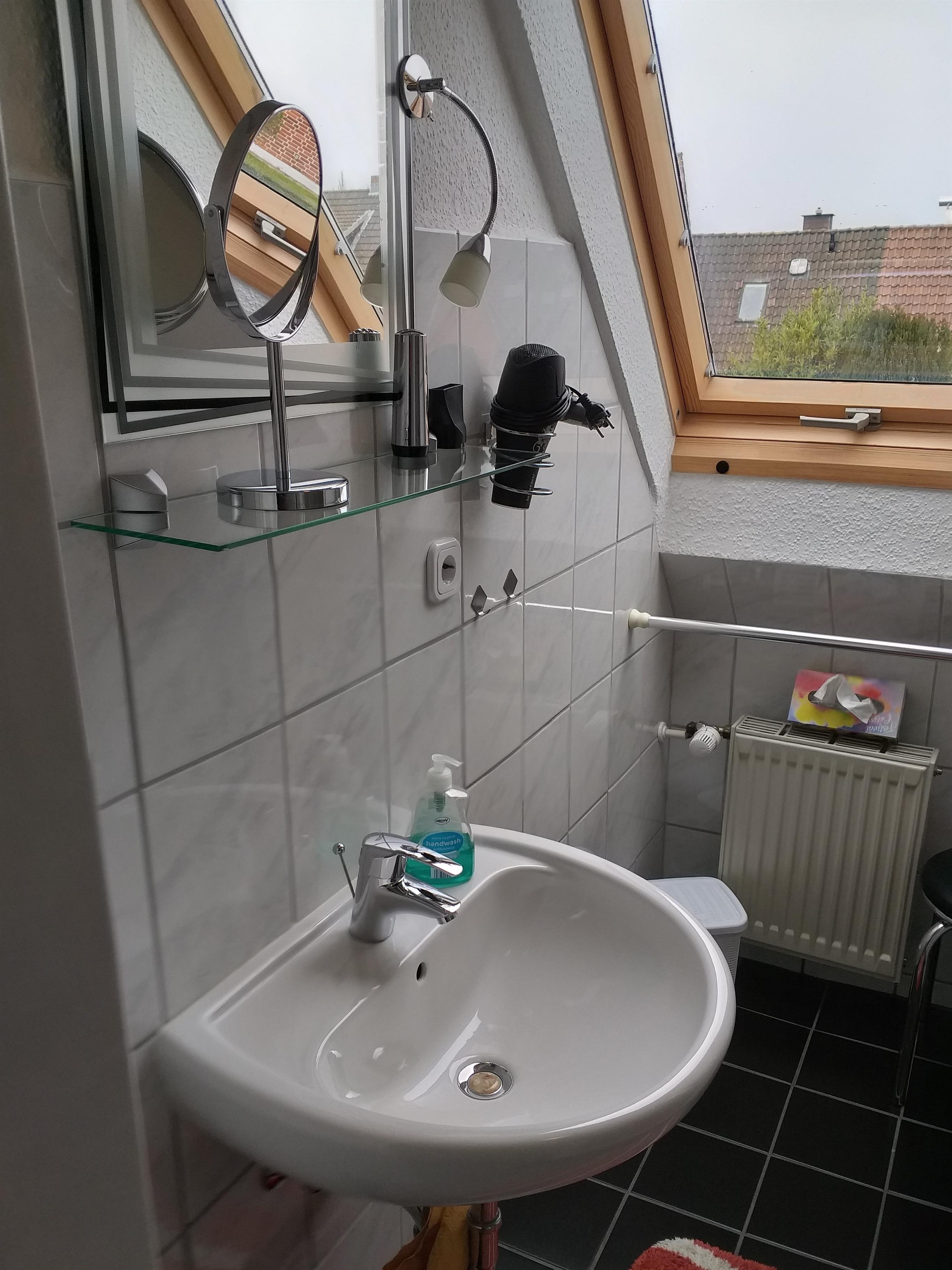 Ein separates WC ist vorhanden. Zur Wohnung gehört ein kleines, feines Duschbad - alles neu. Bettwäsche und Handtücher sind inklusive.