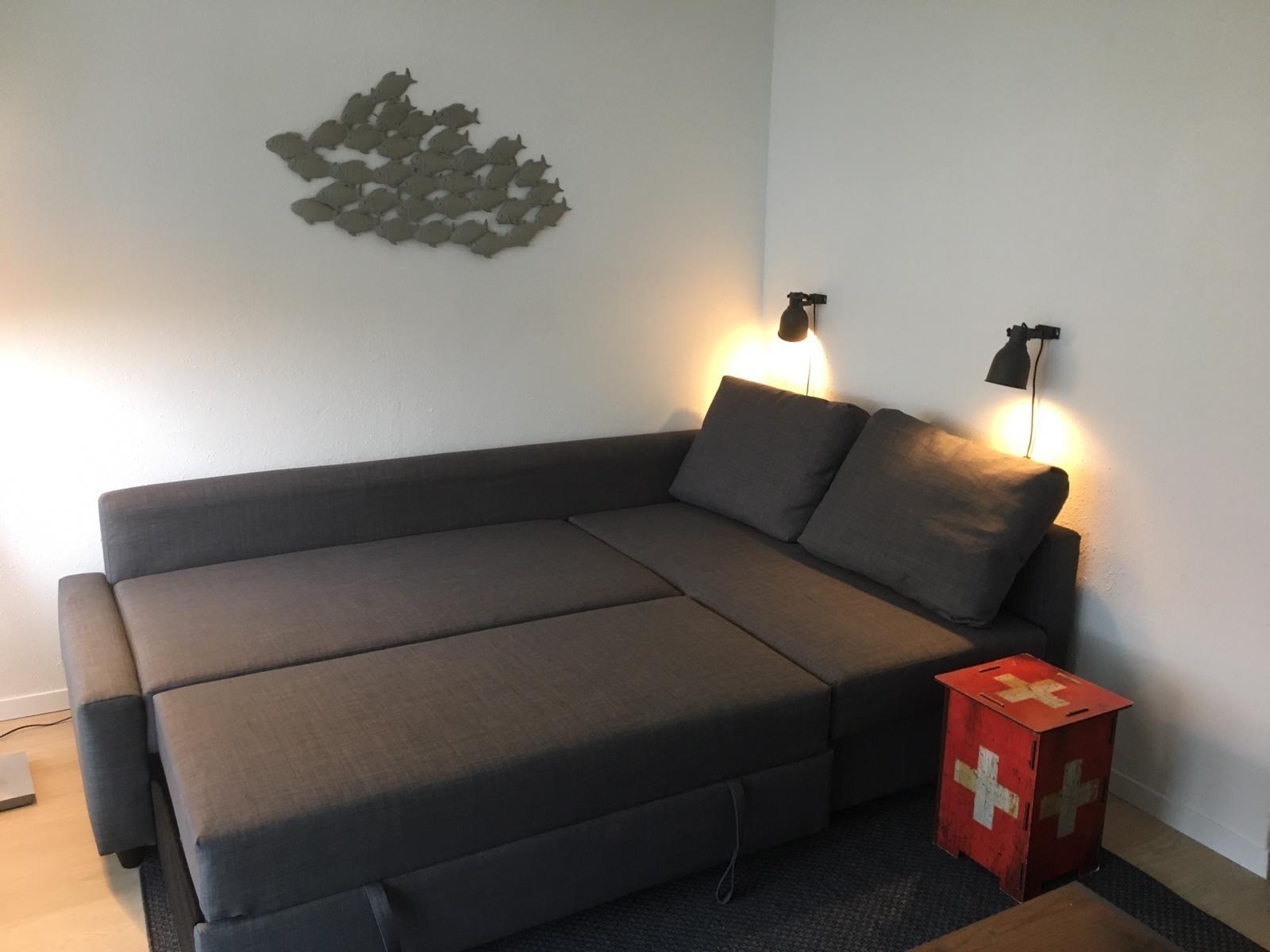 Die frisch renovierte Eckwohnung bietet einen entspannten Aufenthalt für bis zu drei Personen. Die großen Panoramafenster des Wohnzimmers sind nach Südwesten ausgerichtet. Genießen Sie auf dem umlaufenden Balkon die spektakulären Sonnenuntergänge. Zum direkt angrenzenden Naturstrand sind es nur knapp 100 Meter, zum Südstrand mit Strandkörben, Restaurants und Bars sind es wenige hundert Meter. Die Küche ist modern eingerichtet und mit allem Nötigen für den täglichen Bedarf ausgestattet. Das Bad lädt zu einem entspannenden Wannenbad oder einer erfrischenden Dusche ein. Auf dem Schlafsofa finden zwei Erwachsene zur Ruhe, ein Einzelbett steht in einem eigenen Schlafraum zur Verfügung.