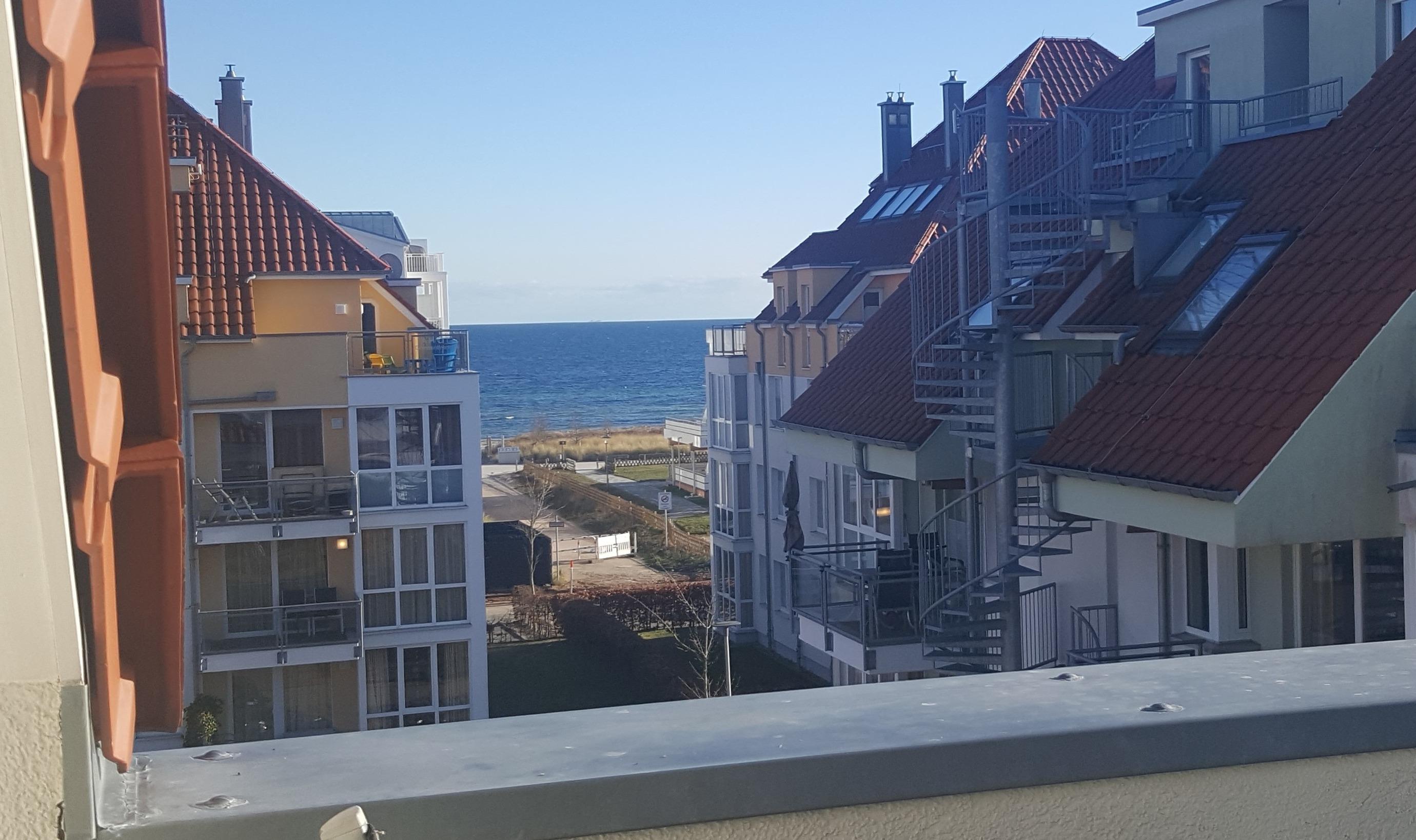 Auf unserer gemütlichen Dachterrasse können Sie wind- und sichtgeschützt die Sonne von morgens bis abends genießen. Von hier aus haben Sie einen traumhaften Ausblick auf die Ostsee.