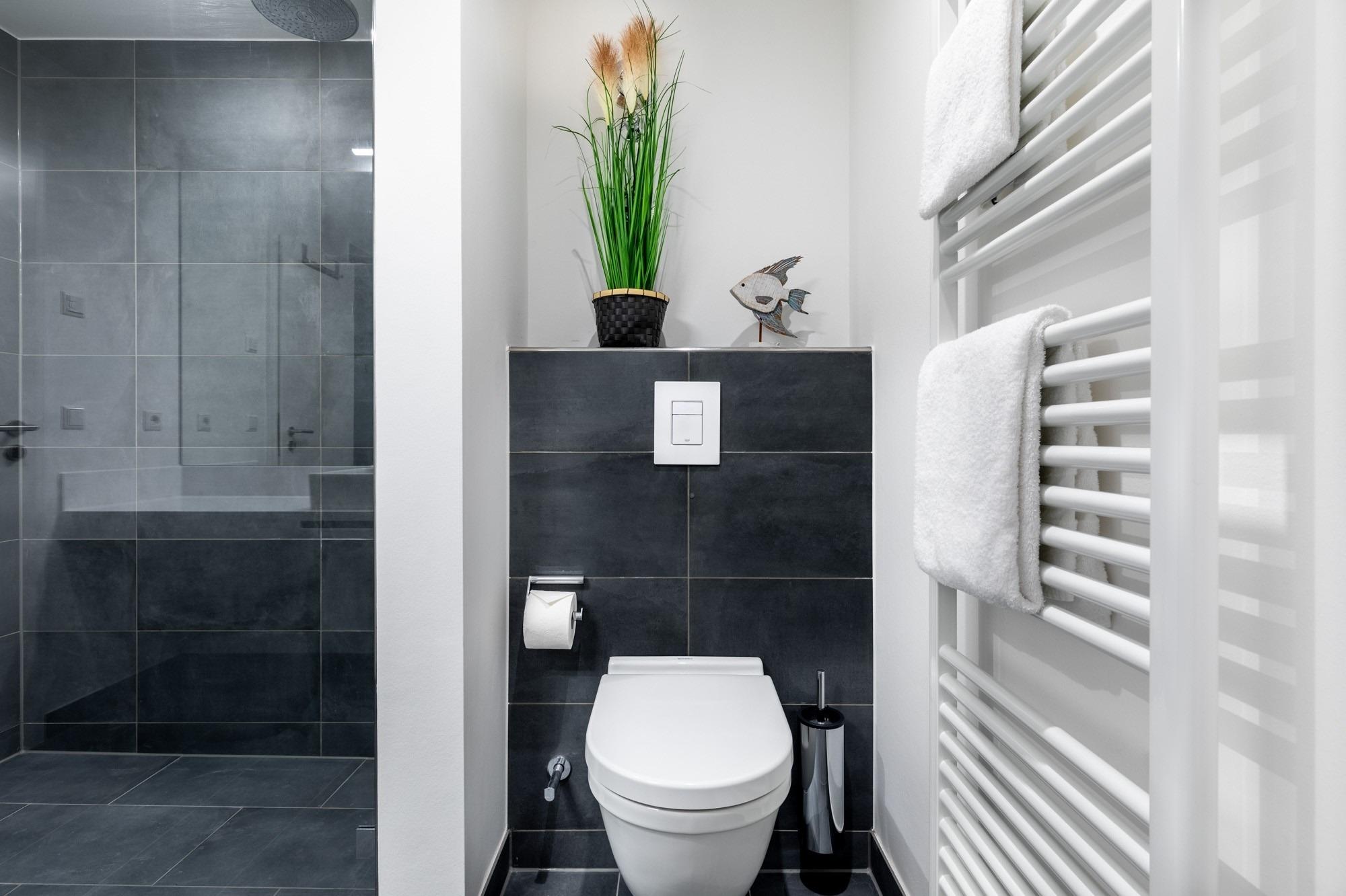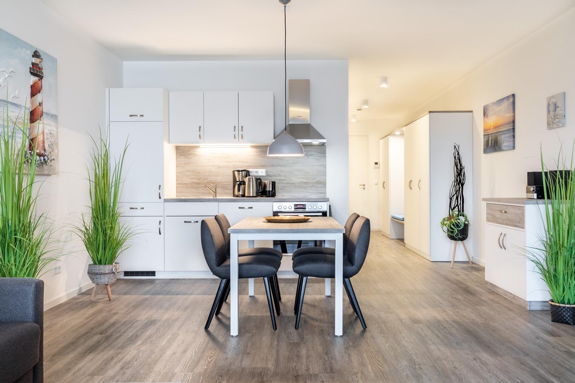 Die hochwertig ausgestattete Ferienwohnung "Meerblick" ist lichtdurchflutet und mit Fussbodenheizung ausgerüstet. Sie besitzt große bodentiefe Fensterflächen und ist mit 58 m2 sehr gut für 2 bis 4 Personen geeignet. Besonders hervorzuheben ist der sonnige und überdachte Balkon in Süd-West Lage, hier genießen Sie das wohltuende Meeresklima und das bunte Treiben am Strand. Auch Ihr Vierbeiner ist hier herzlich willkommen!