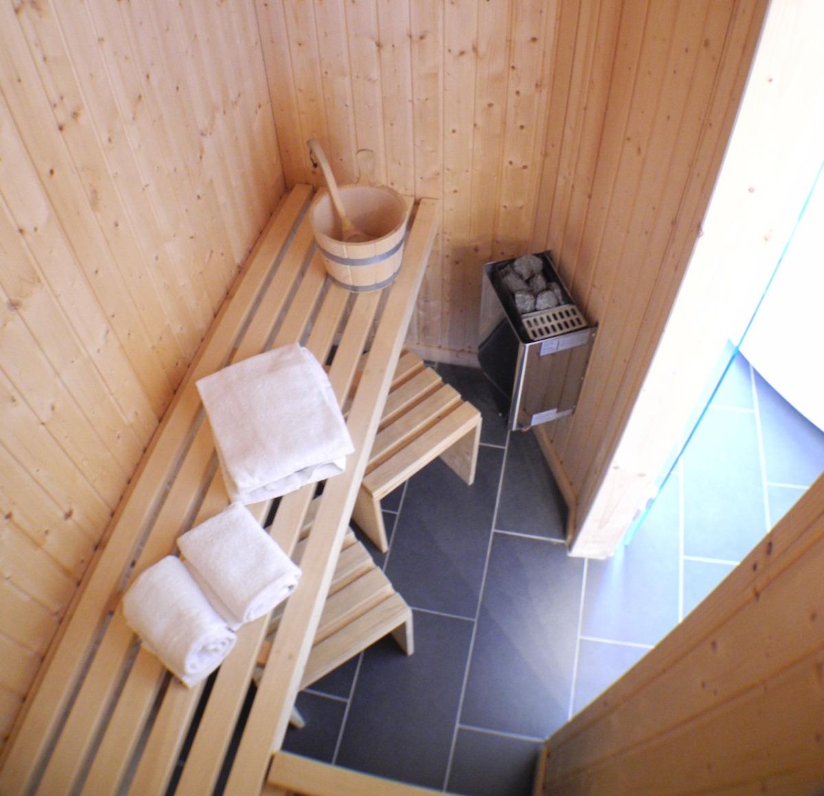 Im paradiesischen Wellnessbad können Sie es sich unzählige Stunden mit prickelndem Champagner selbstverständlich bei romantischem Kerzenschein gut gehen lassen. Dank einer beruhigenden Sauna, eines wohltuenden Airpool oder einer heißen Dusche haben Sie die Möglichkeit, den Rest der Welt zu vergessen und sich vollkommen zu entspannen.
