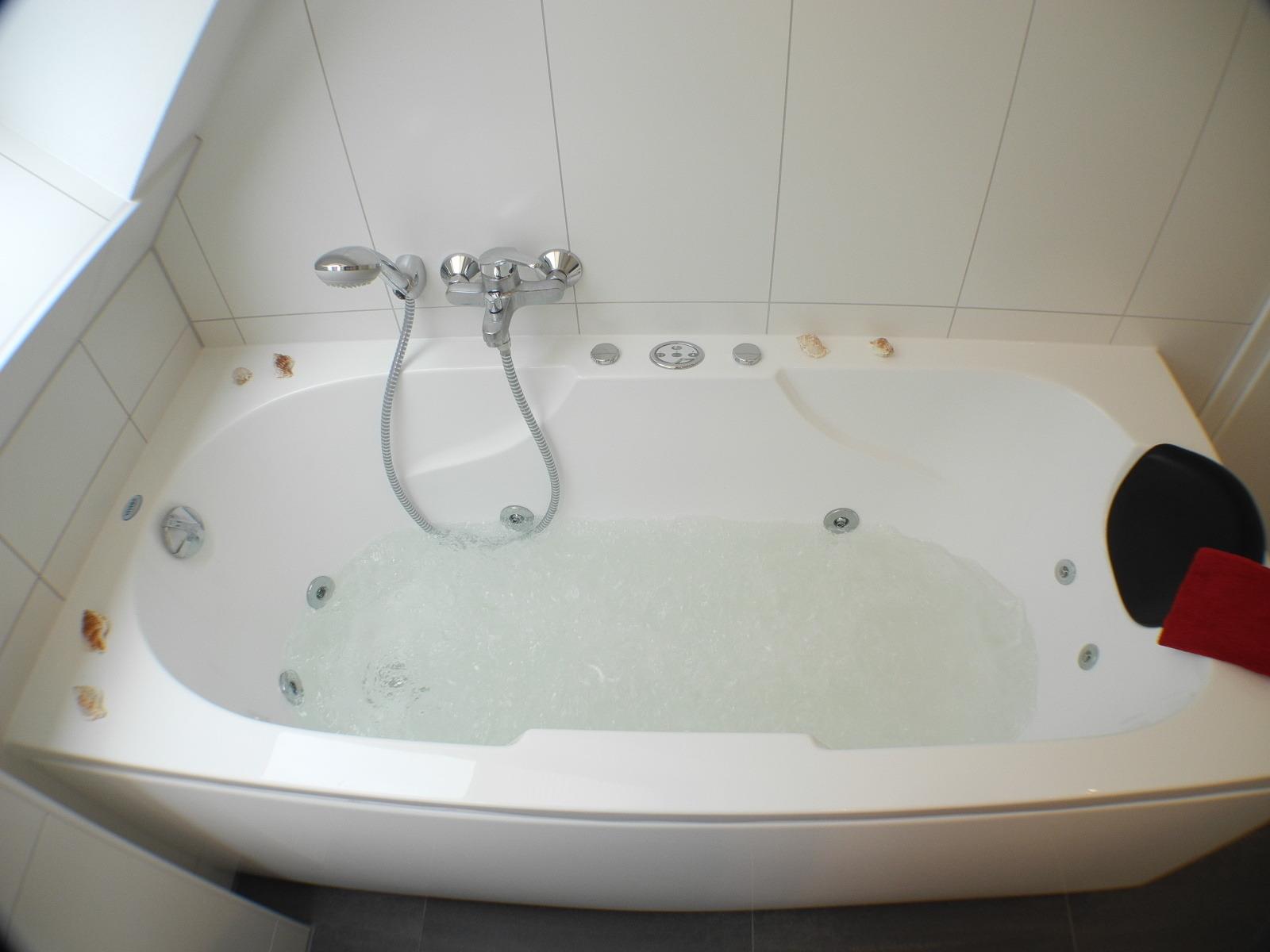In unserem Wellnessbad finden Sie eine Whirlpool-Wanne und eine Wellnessdusche. Hier können Sie sich komplett entspannen und es sich gut gehen lassen. Eine Waschmaschine steht Ihnen ebenfalls zur Verfügung.