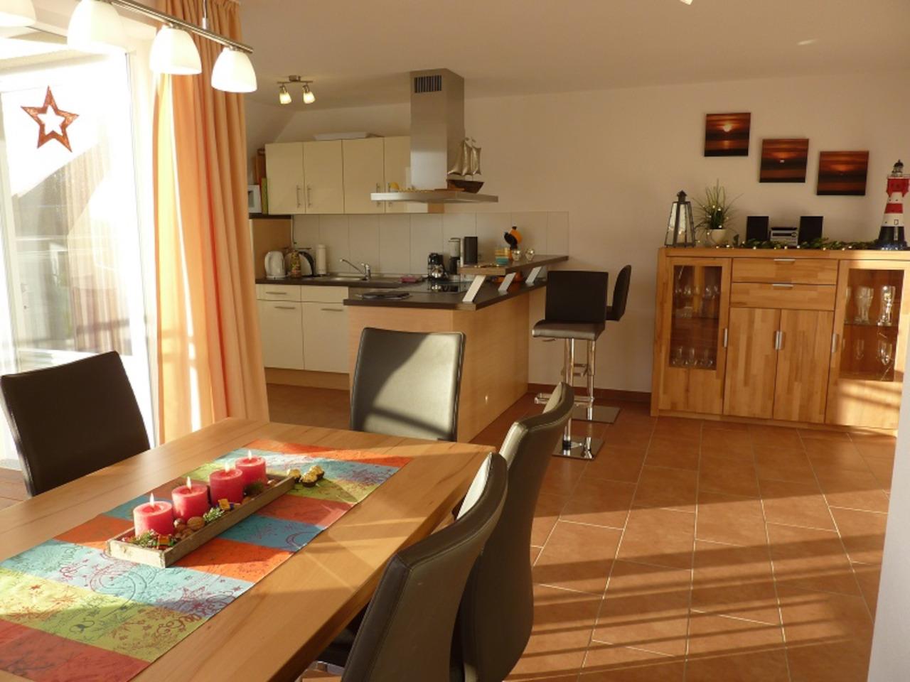 Der gemütliche Wohnbereich ist mit einem Schlafsofa, einem Sessel und mit einem Kamin ausgestattet. Hier befindet sich auch der 40 Zoll Smart TV, ein Blue-Ray-Player und eine Musikanlage. Oder lassen Sie den Abend in Ruhe vor dem knisternden Kaminfeuer ausklingen. Der helle Essbereich mit 6 Sitzplätzen ist mit der offenen Küche verbunden. Die Küche ist mit allem was das Herz begehrt ausgestattet und bietet Ihnen somit genügend Freiraum und Kreativität für die Zubereitung Ihrer Speisen.